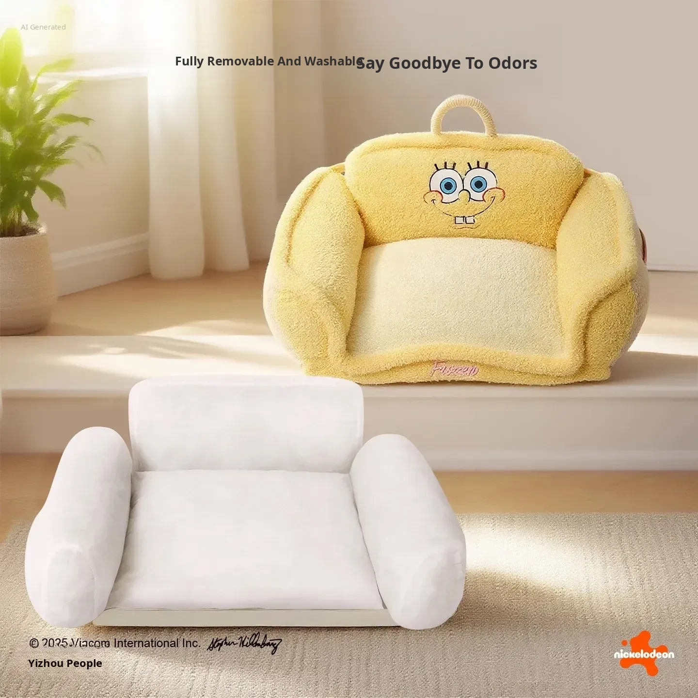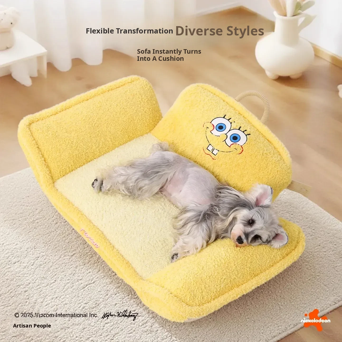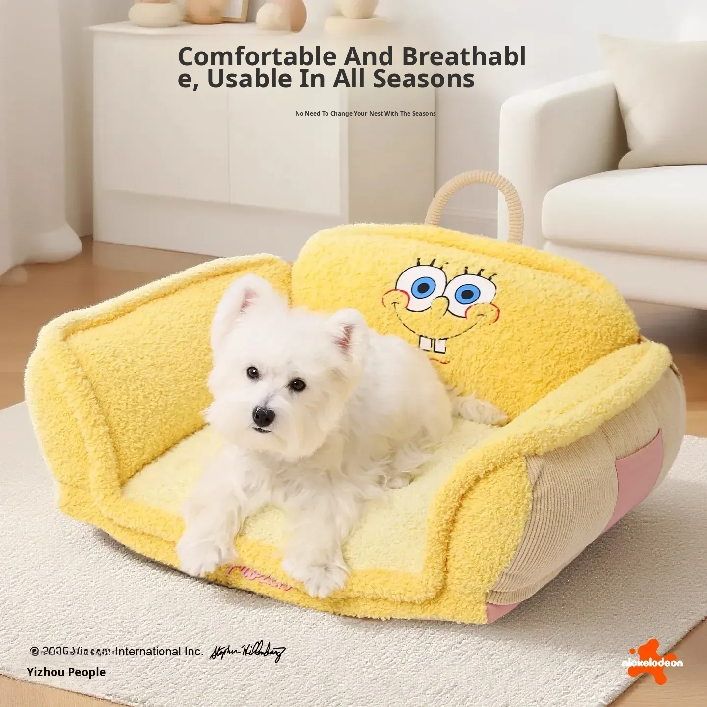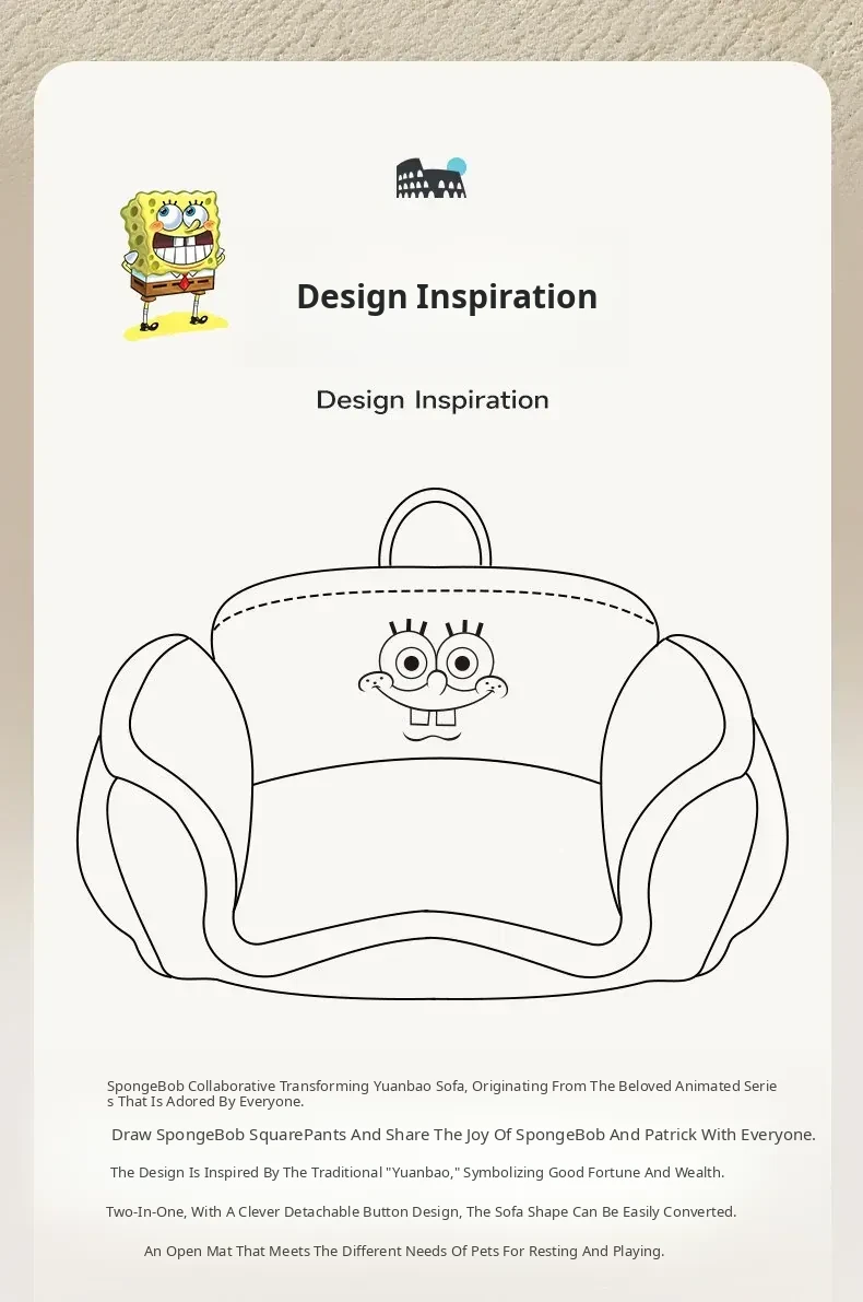 Hoopet × SpongeBob SquarePants Collaboration Cozy Pet Sofa Bed - All-Season, Removable and Washable Sleeping Mat for Small Cats and Dogs