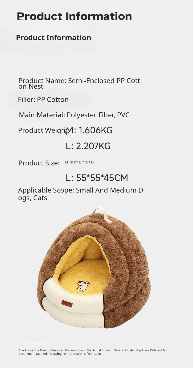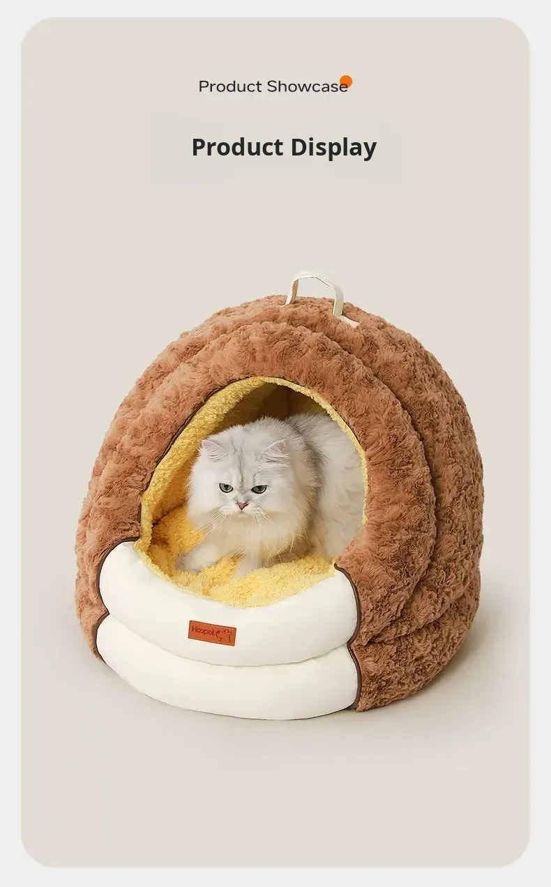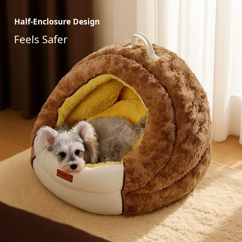 Hoopet Cozy Half-Enclosed Pet Bed for Cats and Dogs - All-Season Comfort and Winter Warmth, Perfect for Creating a Safe Haven for Your Furry Friends!