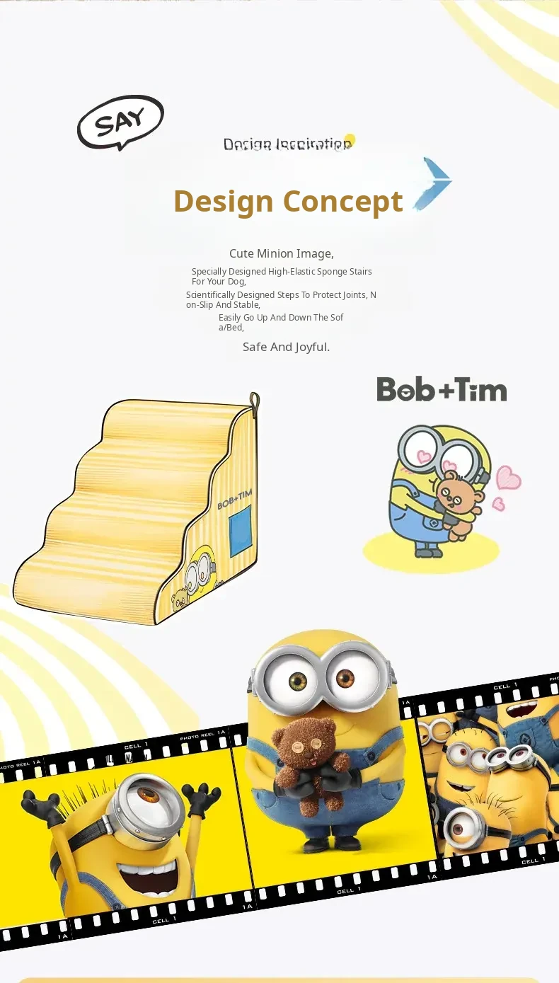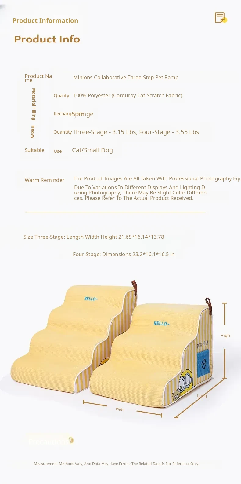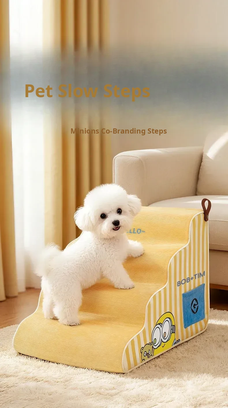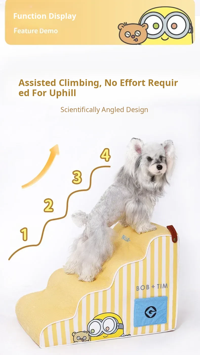 HOOPET Minions Collaboration Pet Steps - Removable and Washable Ramp for Senior Dogs and Cats to Easily Access Beds and Sofas