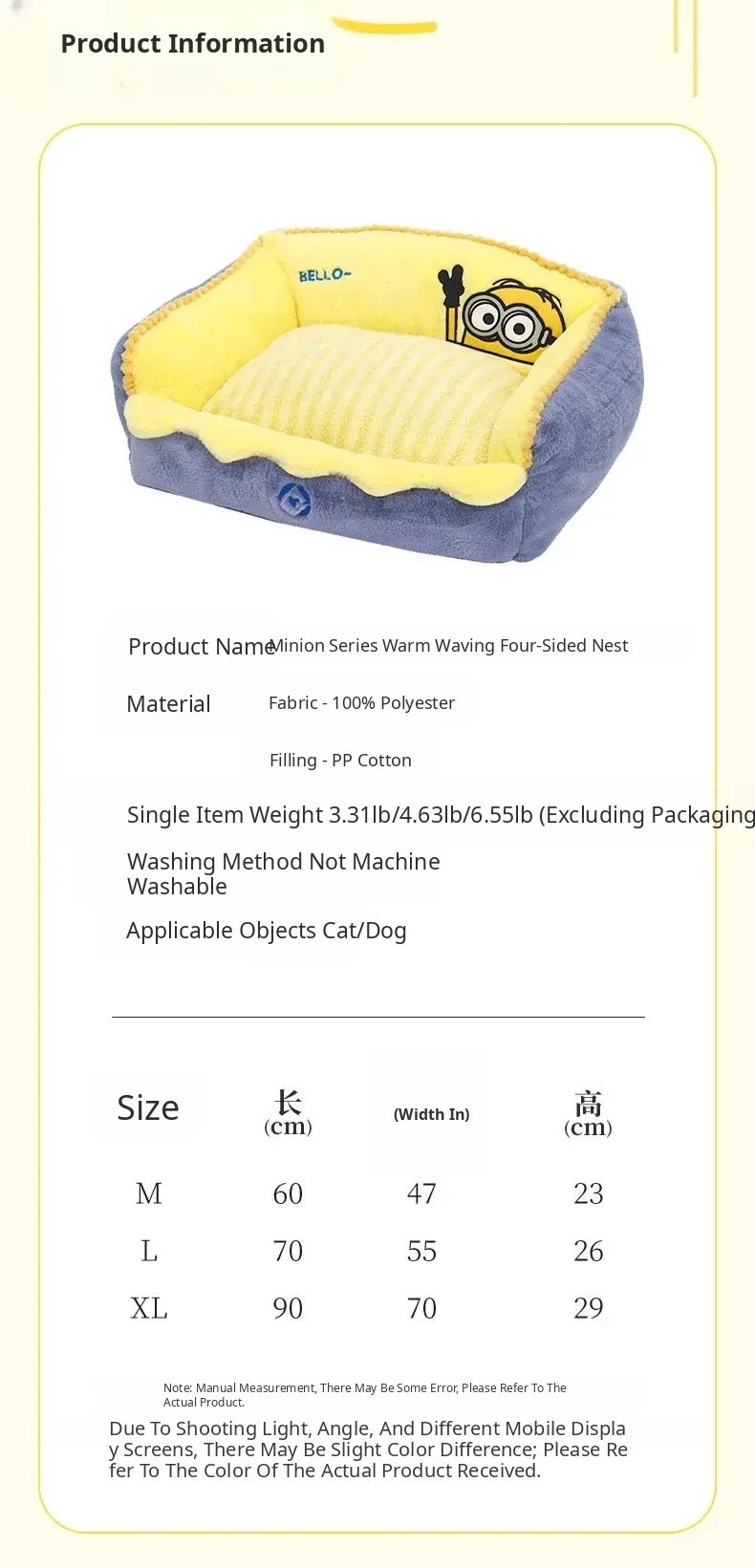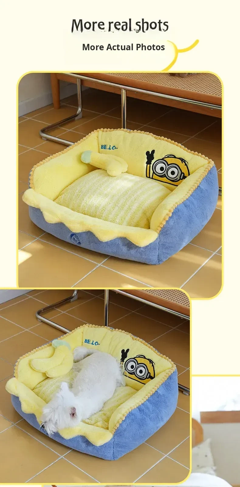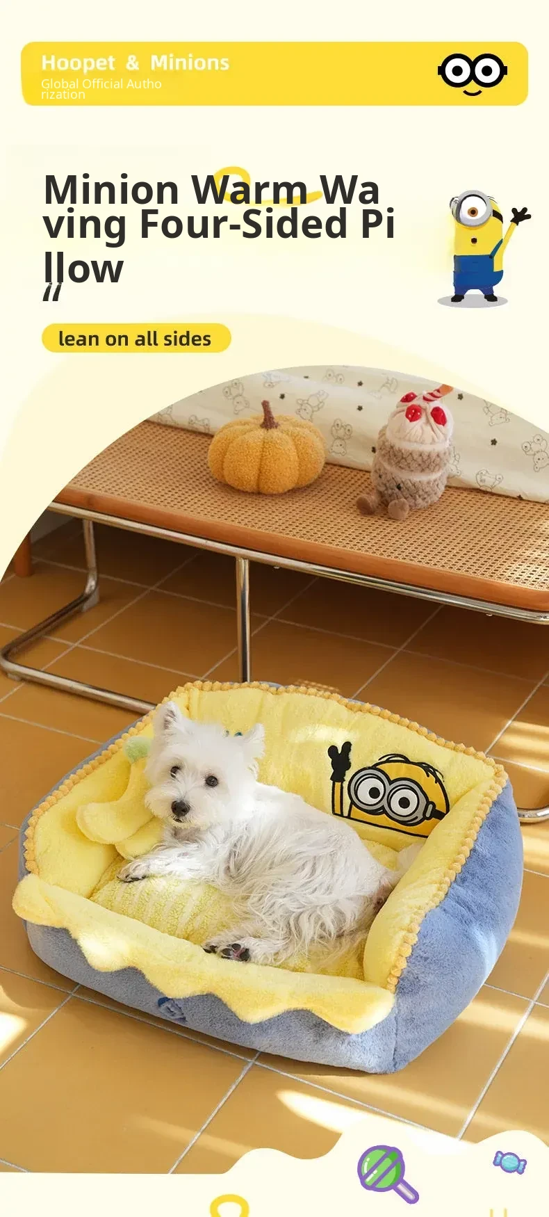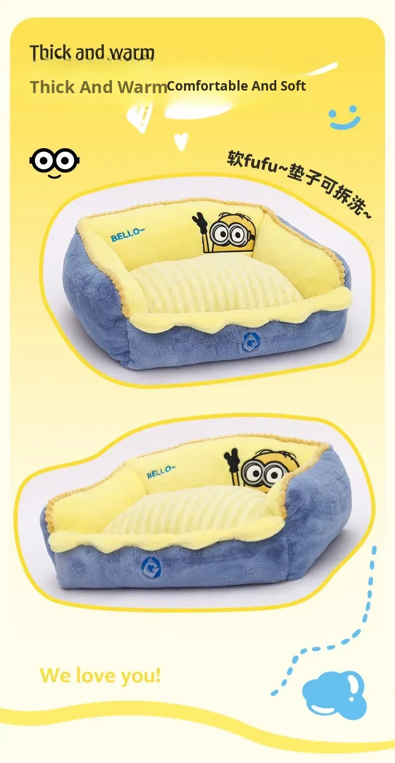 HOOPET Minion-Themed Cozy Dog Bed - Winter Warmth, Removable & Washable Cat Nest, All-Season Versatile Mat for Small Dogs - Stylish Sofa for Your Furry Friends