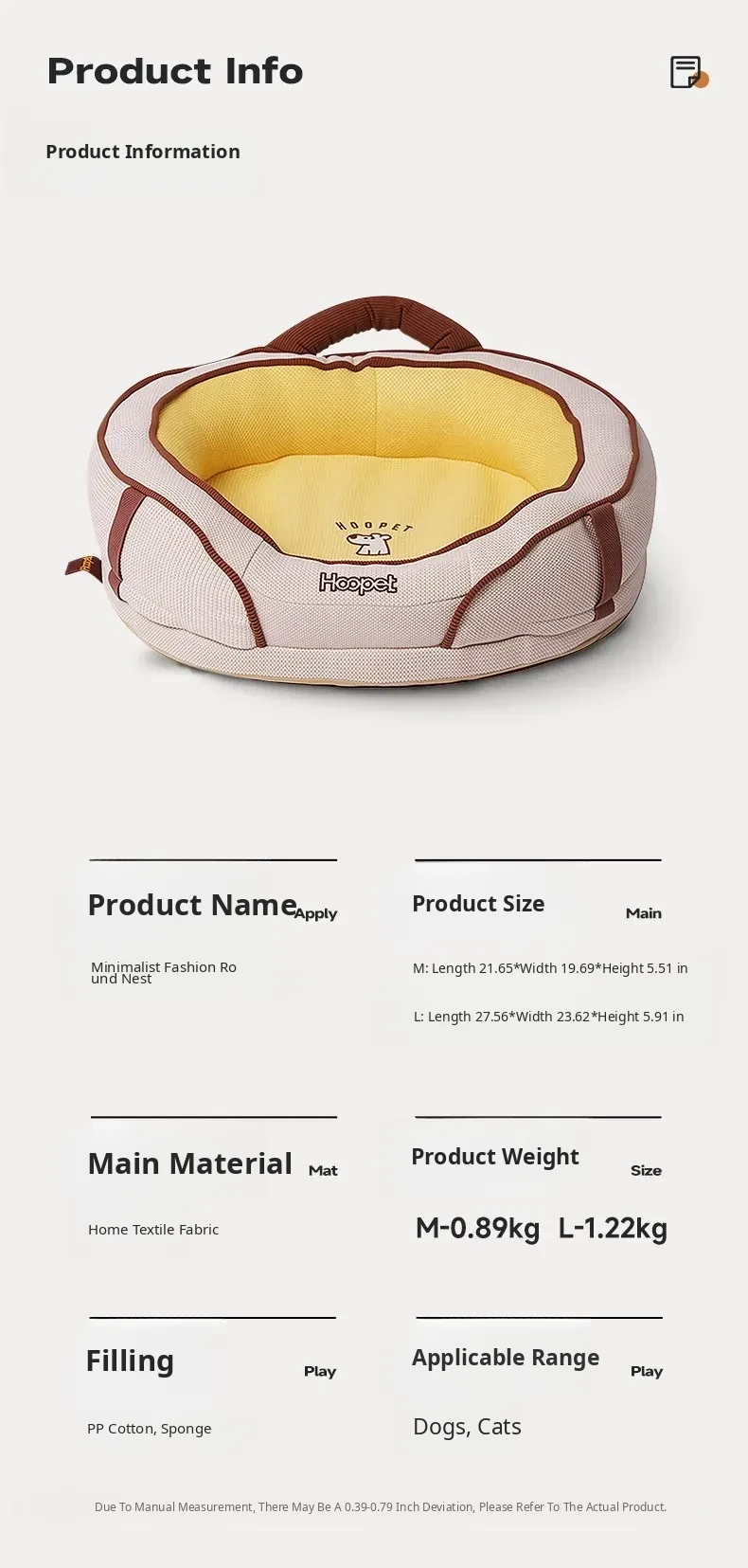 Hoopet Stylish Round Dog Bed - Versatile All-Season Comfort for Small Breeds, Perfect for Summer - Removable and Washable Design for Easy Care, Ideal for Schnauzers and Other Small Dogs