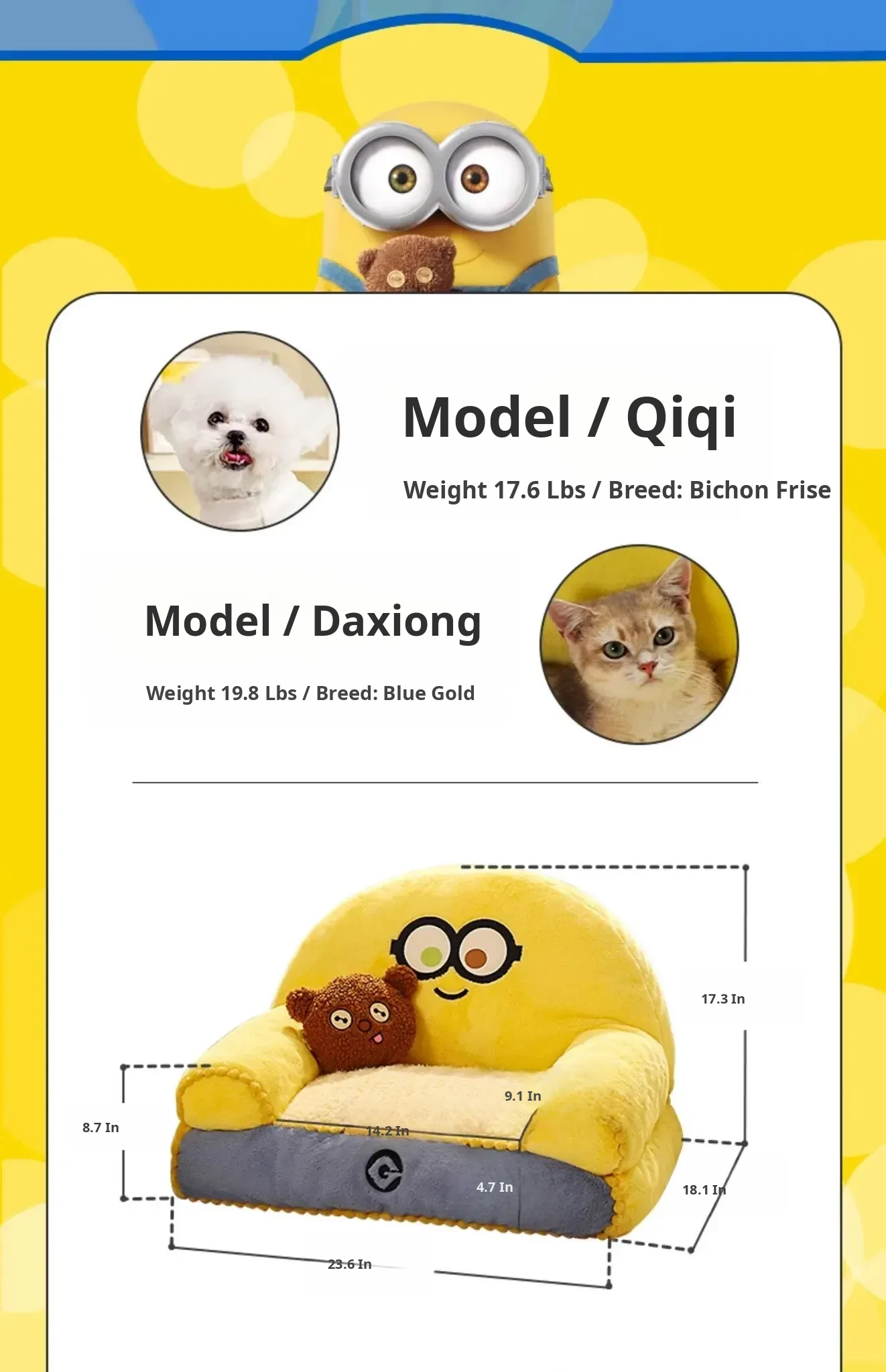 Minion Dog Bed - Cozy Winter Pet Mat with Removable Cover for Small Dogs - Perfect for Keeping Your Furry Friend Warm this Winter!