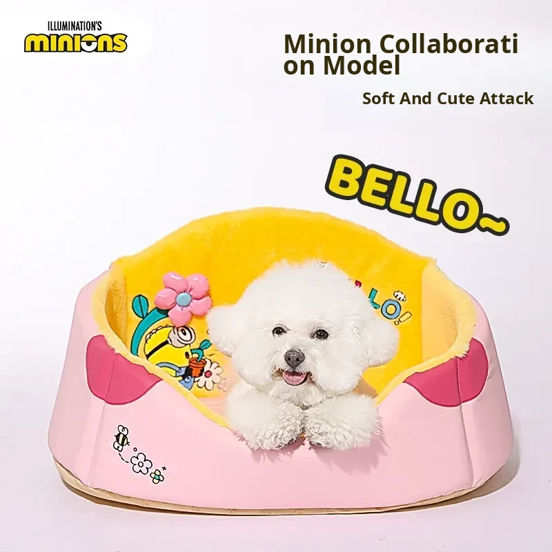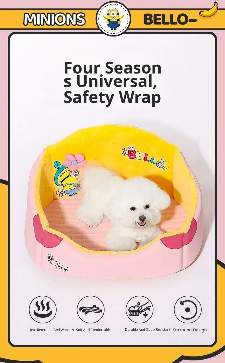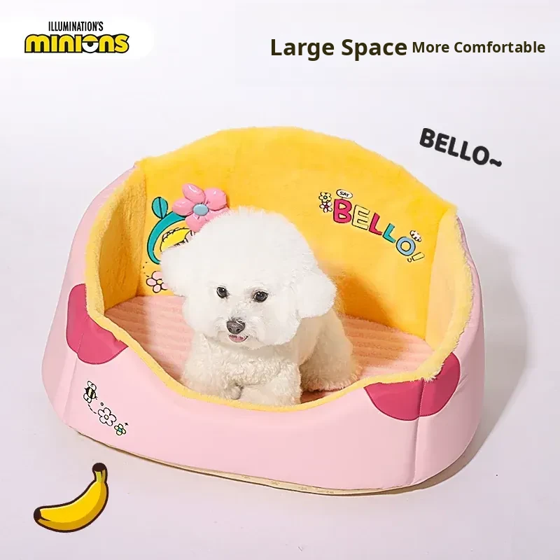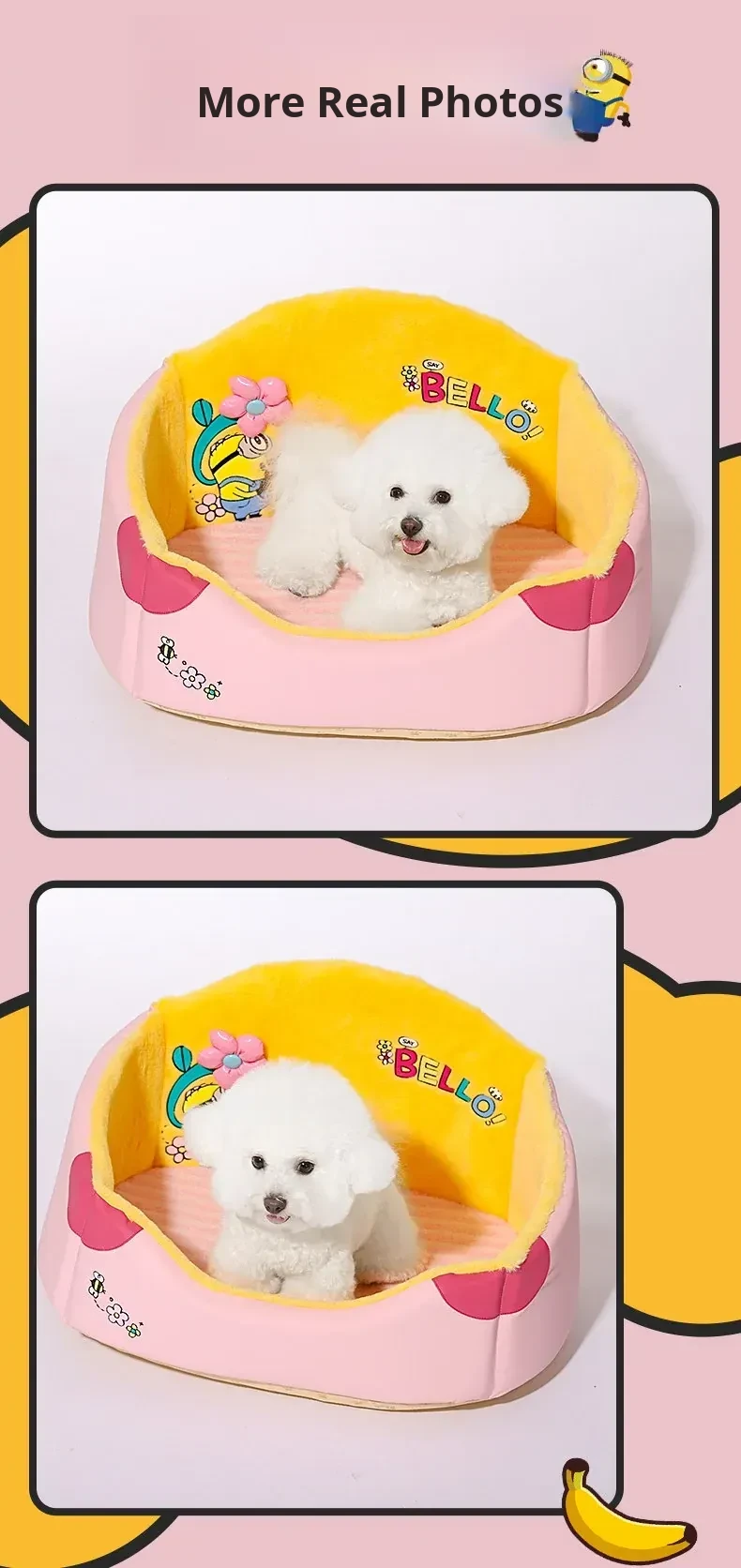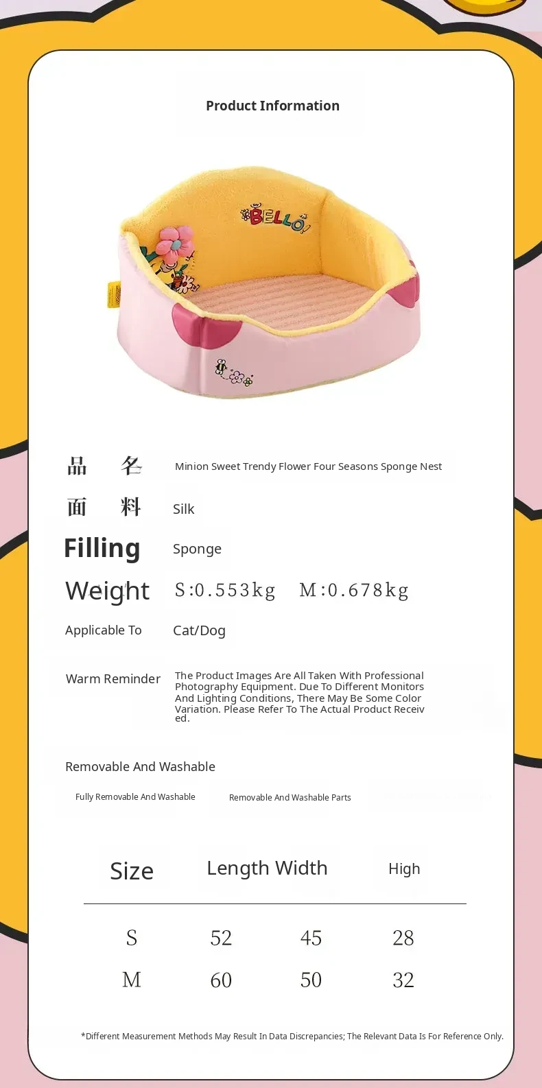 Minion Floral Sponge Pet Bed - All-Season Cooling Mat for Medium to Small Dogs and Cats, Perfect for Summer Comfort and Security.