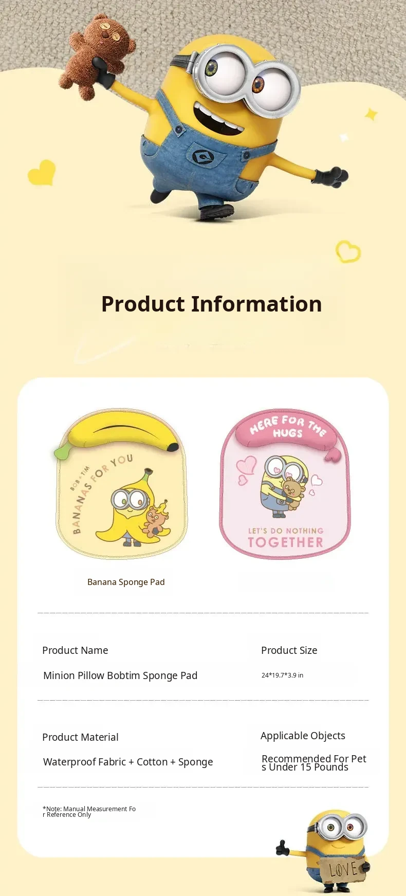 Minion Pillow Bob&Tim Love Sponge Cushion