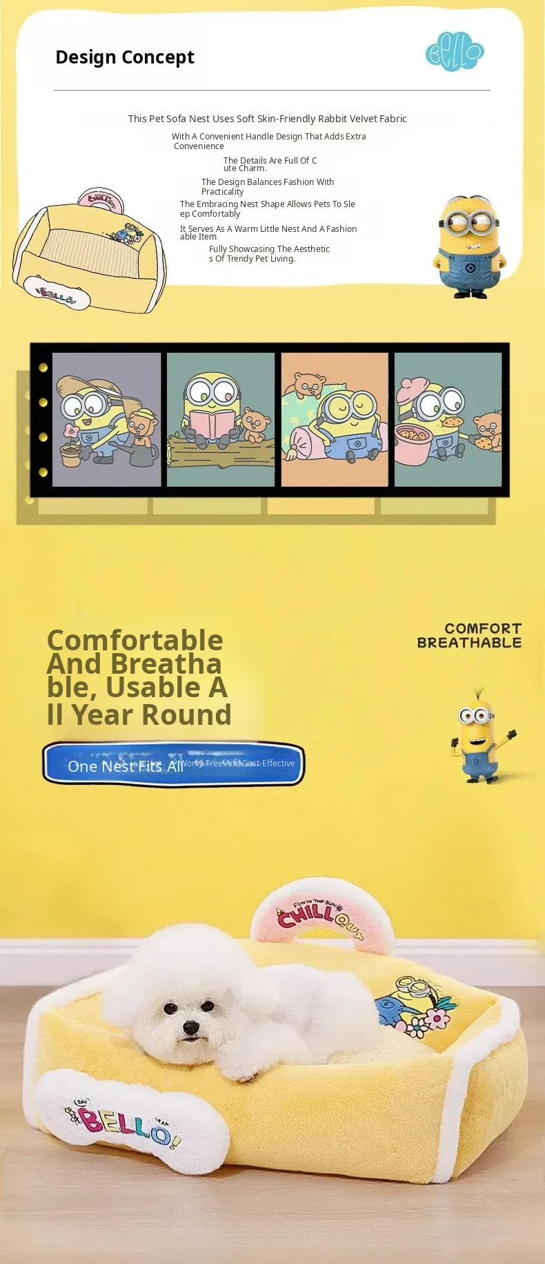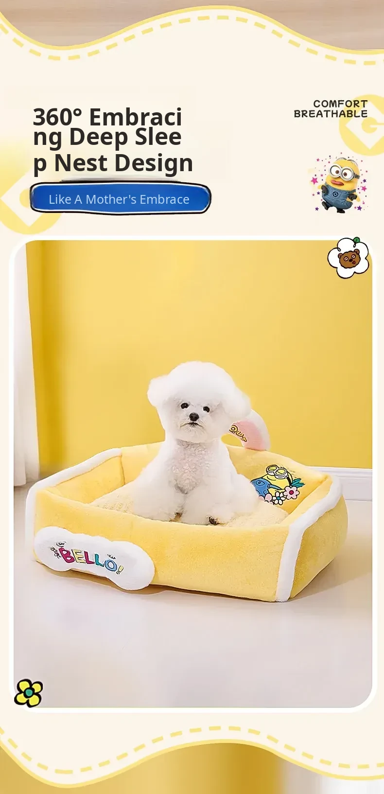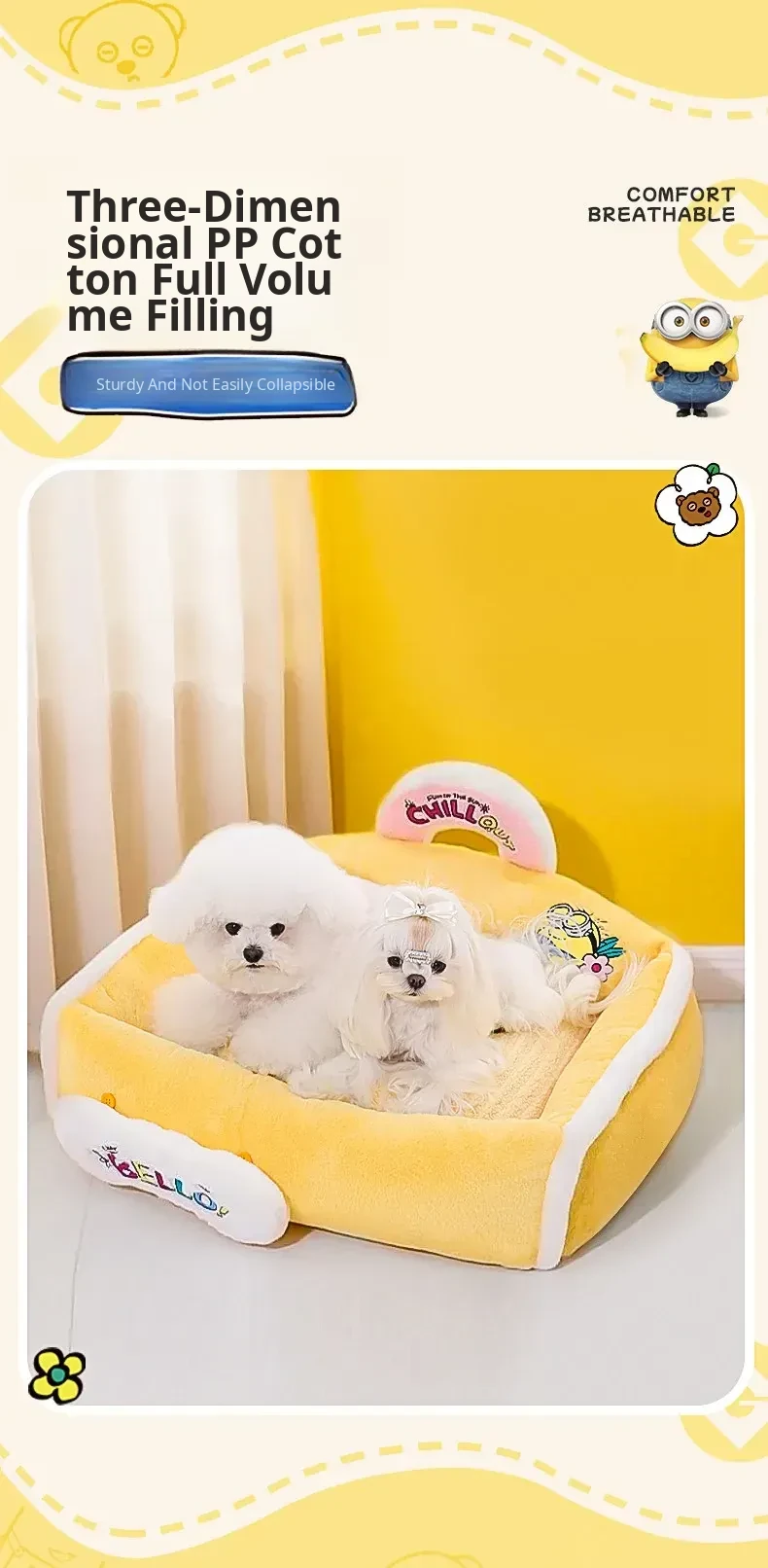 Minion Sweet Trend Portable Sofa Dog Bed - All-Season Cozy Nest for Dogs, Removable and Washable for Ultimate Comfort and Safety