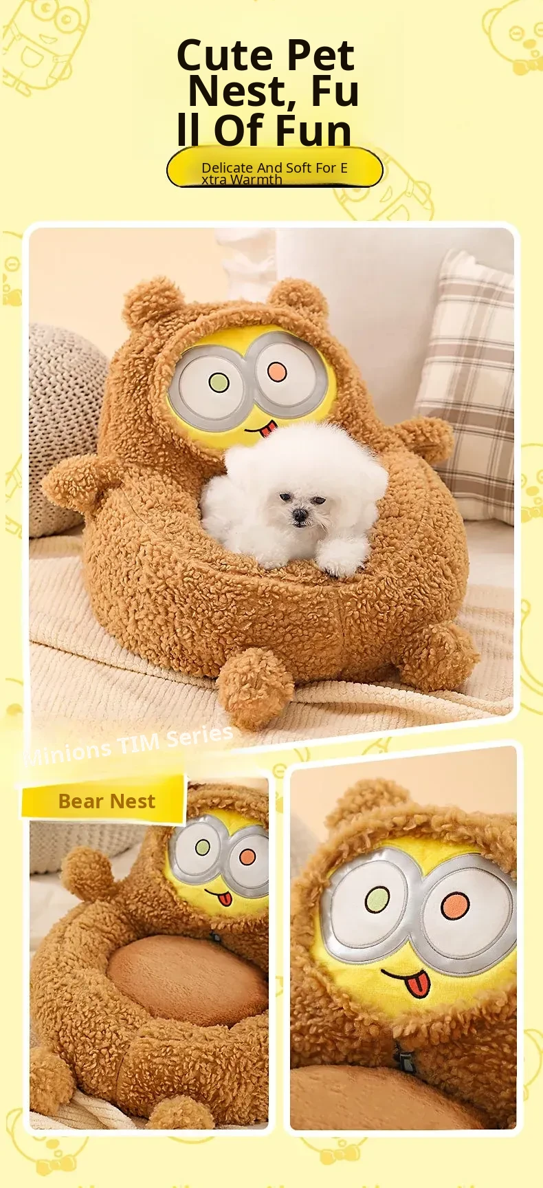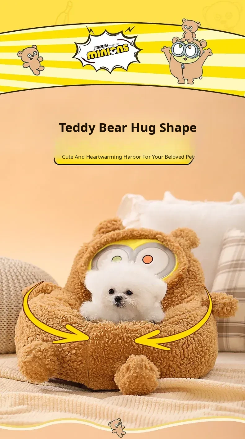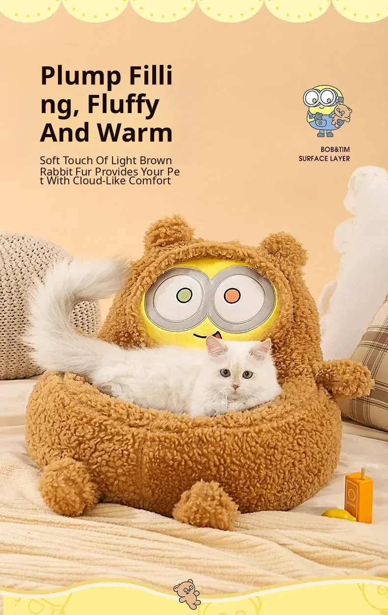 Minion-Inspired All-Season Pet Bed for Small Dogs and Cats - Cozy Winter Warmth and Safety for Your Furry Friends!