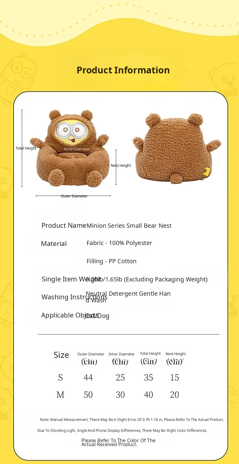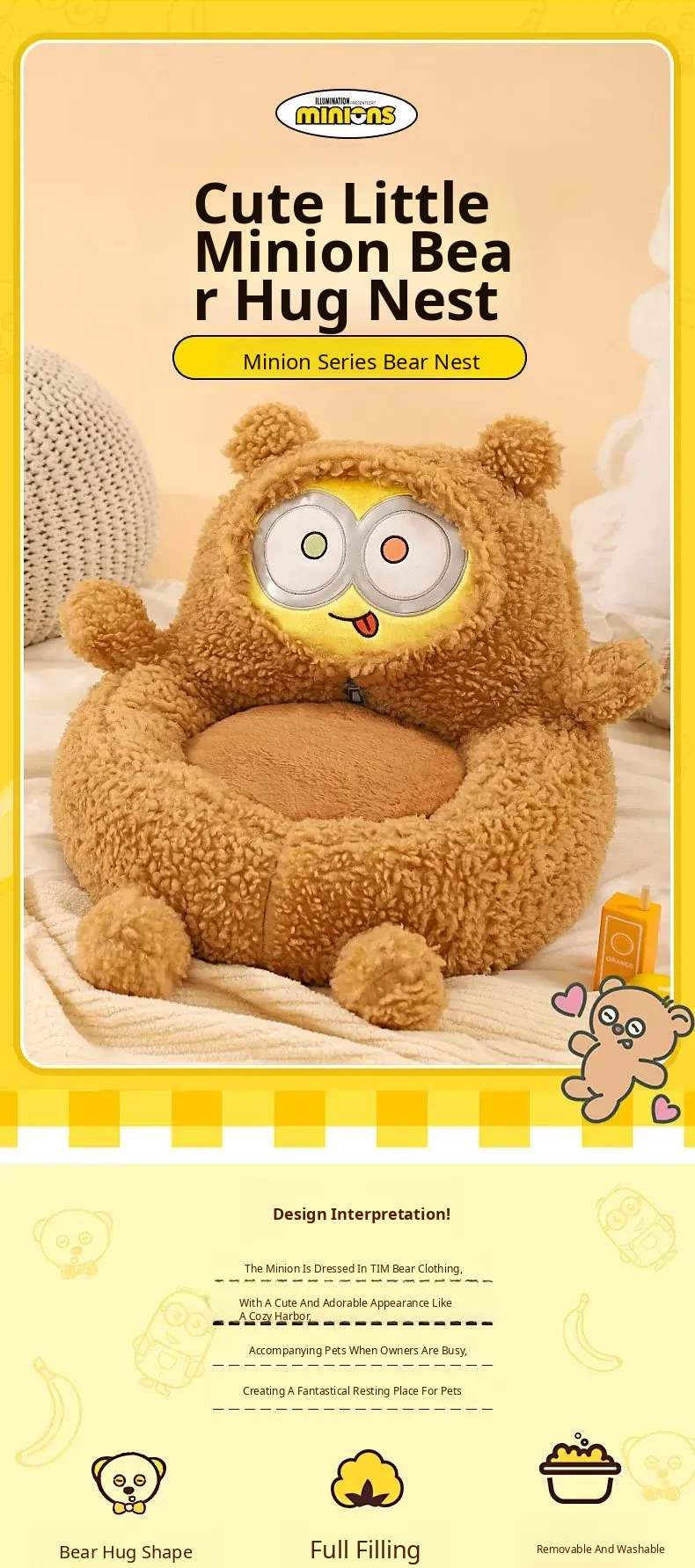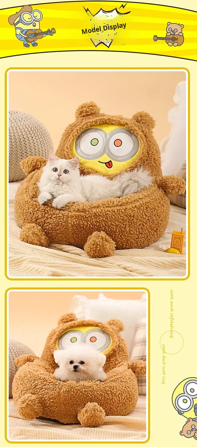 Minion-Inspired All-Season Pet Bed for Small Dogs and Cats - Cozy Winter Warmth and Safety for Your Furry Friends!