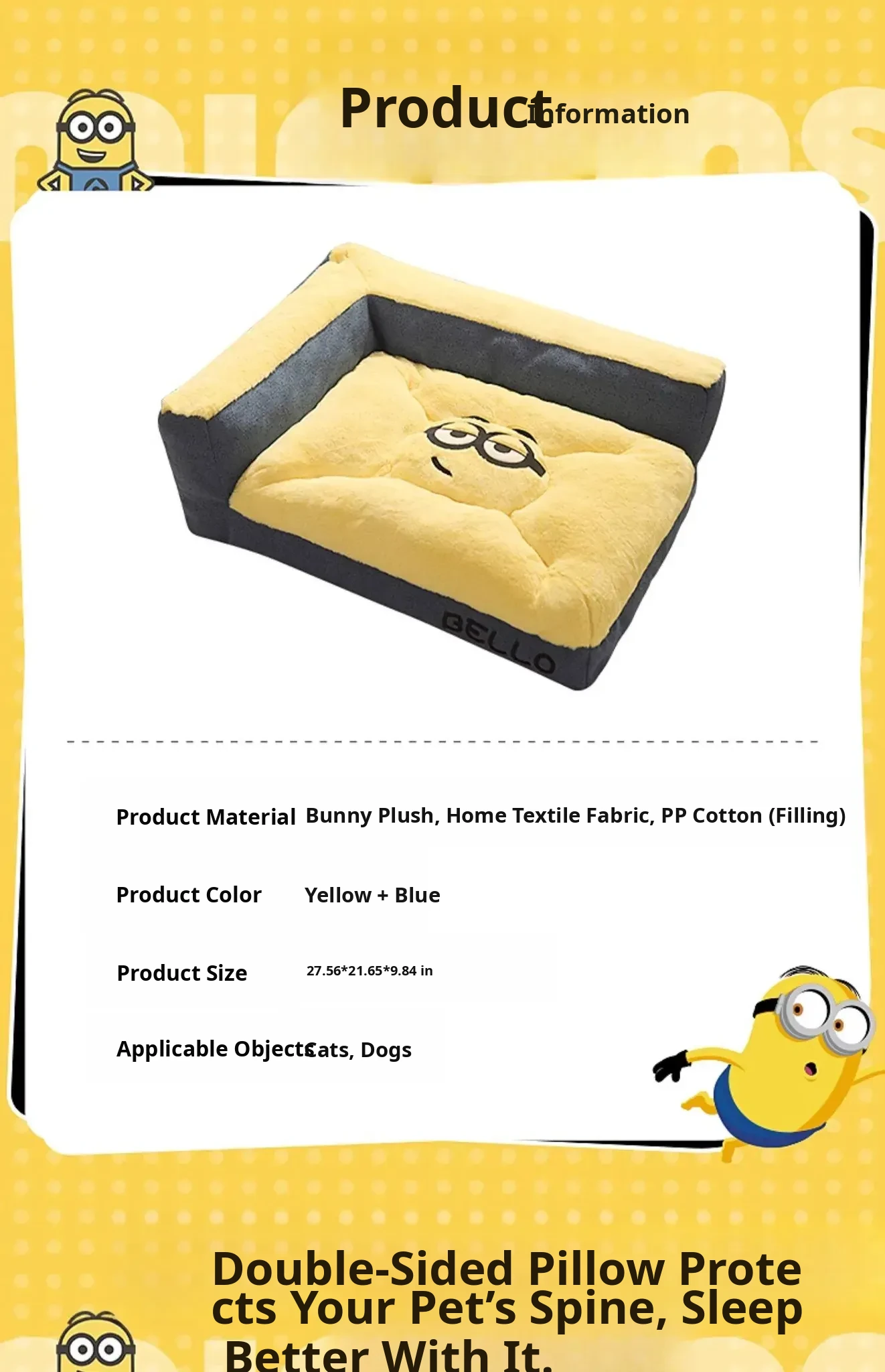 Minions Dave Series Double-Sided Sofa Fabric Pet Bed – Cozy and Warm Winter Nest for Cats and Dogs, Perfect for Fall and Winter Comfort