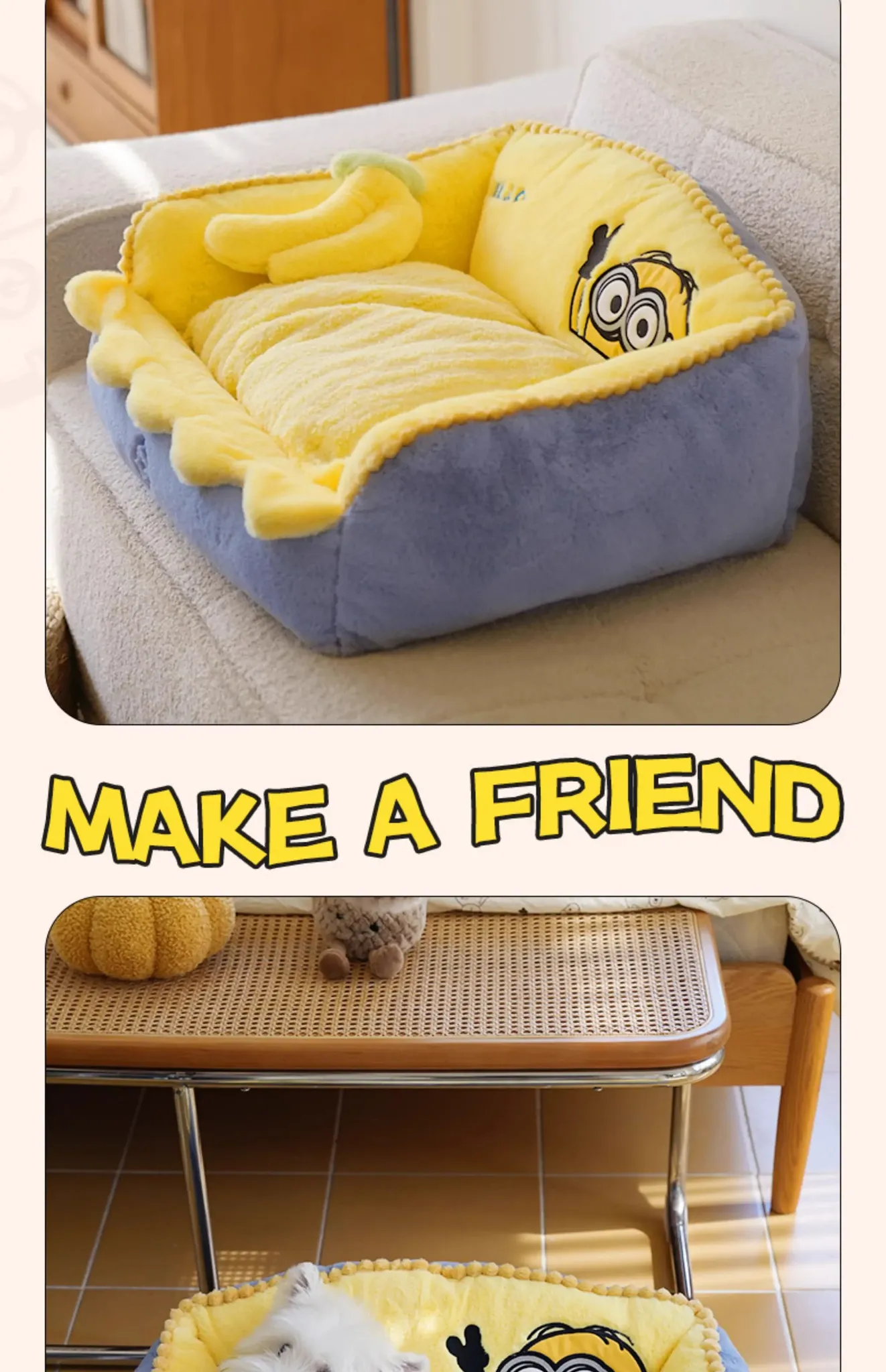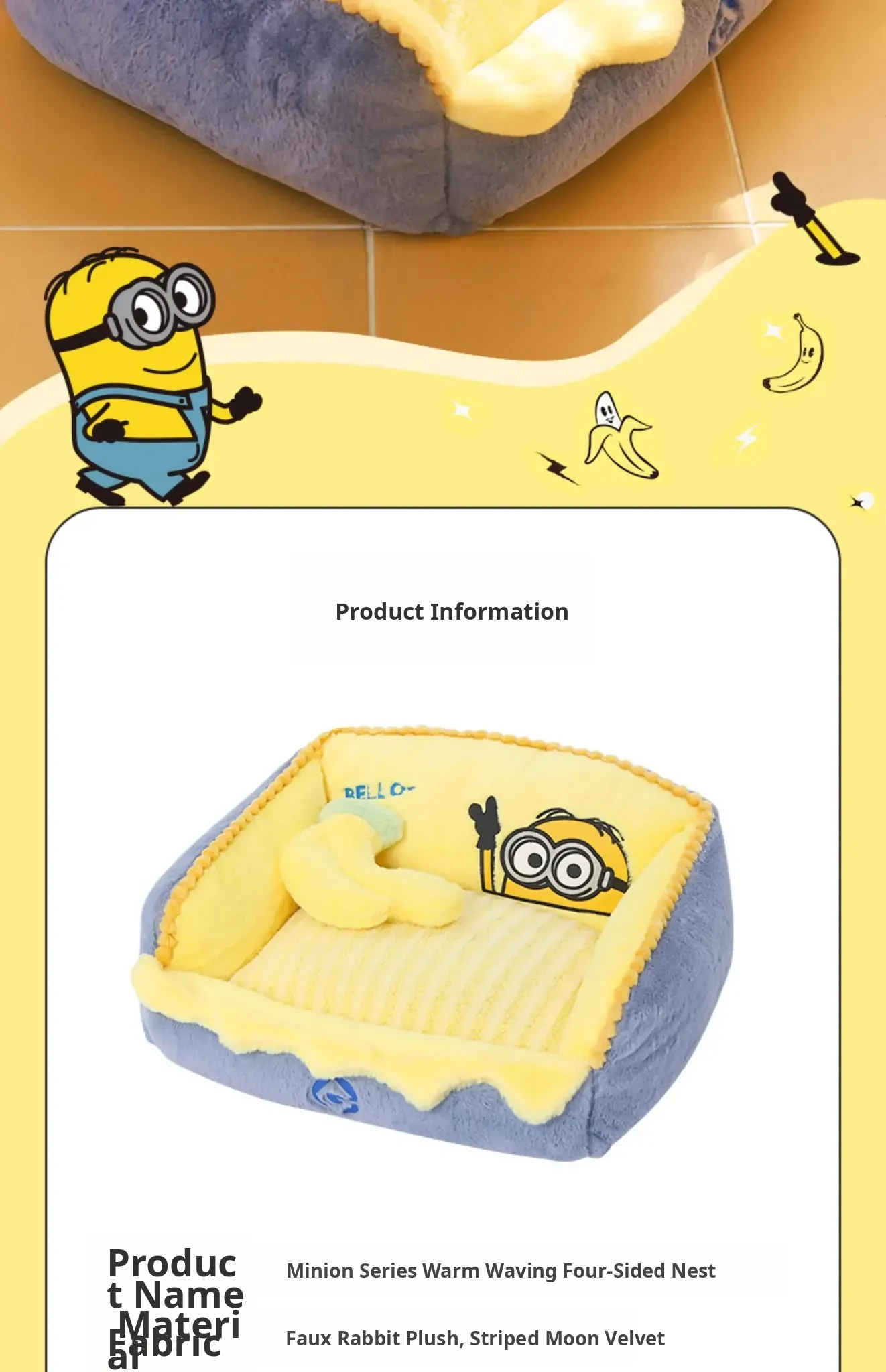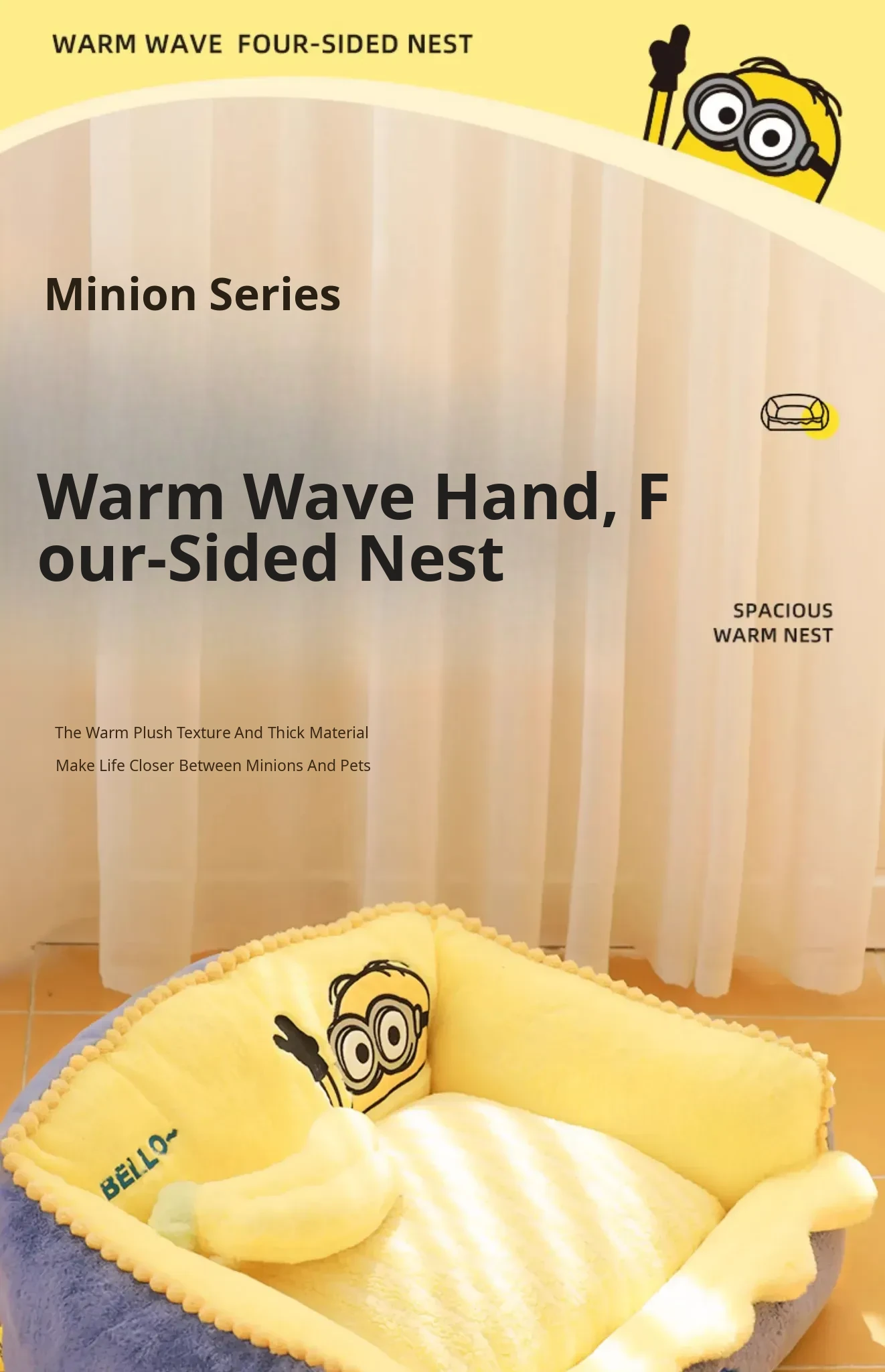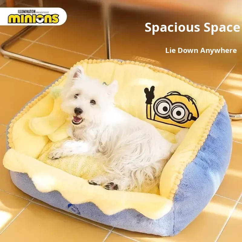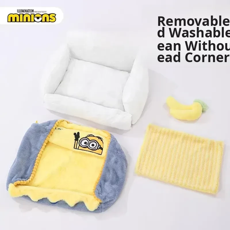 Minions Series Cozy and Warm Four-Sided Removable Pet Bed - Ideal for Cats and Dogs in Autumn and Winter, Perfect for Snuggling!