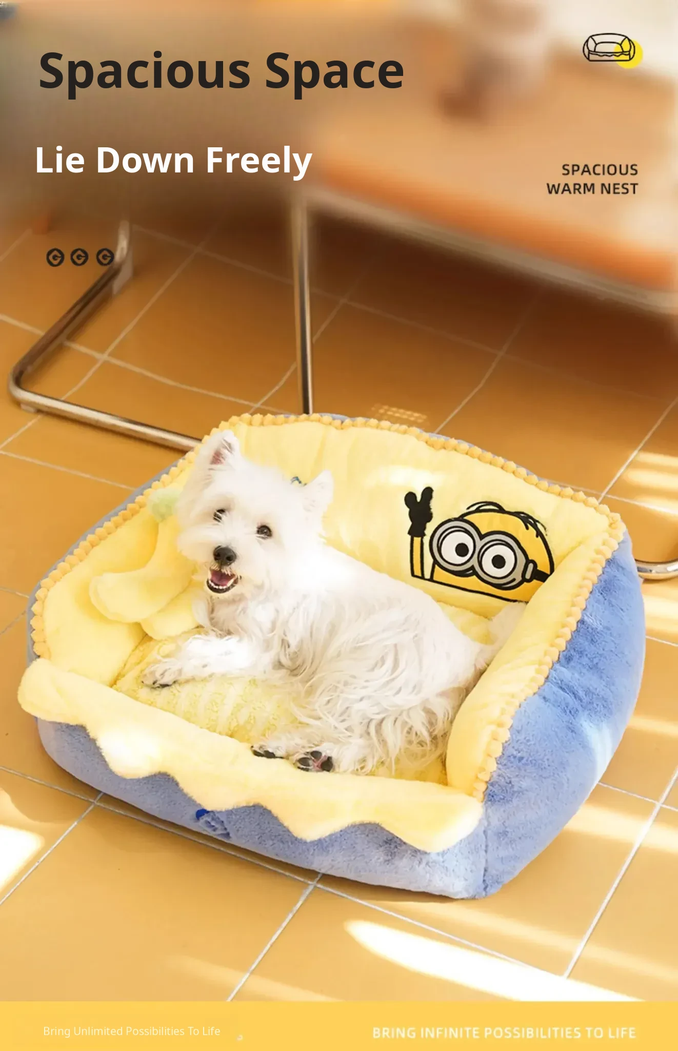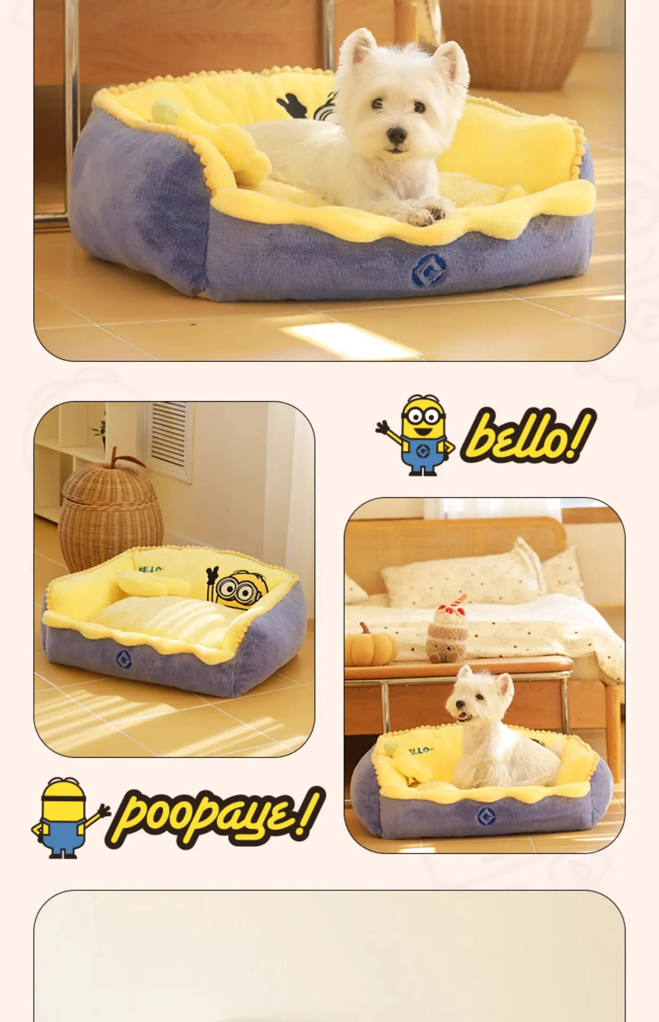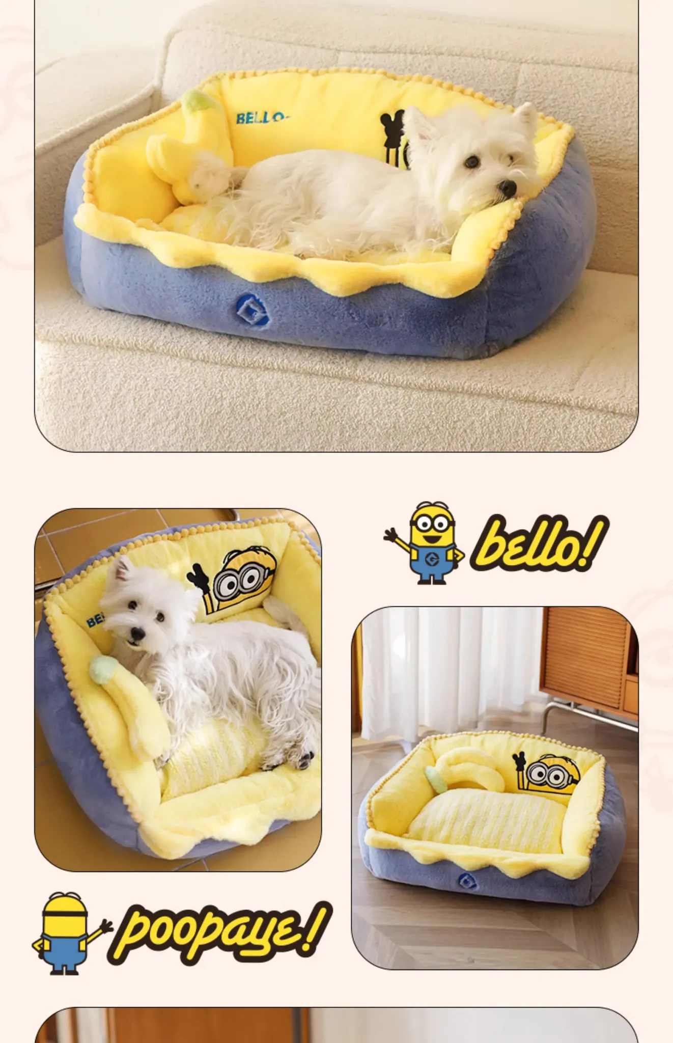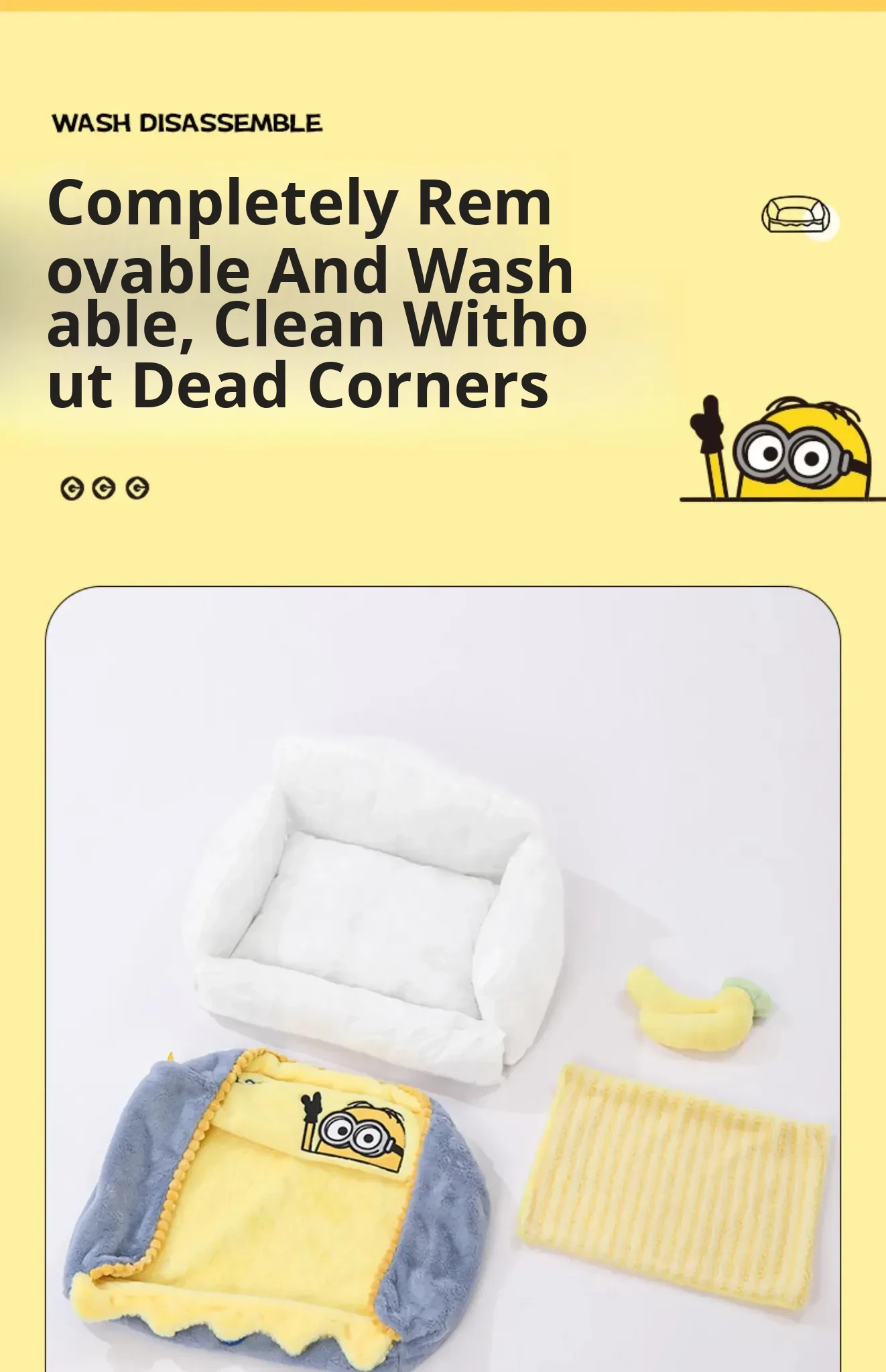 Minions Series Cozy and Warm Four-Sided Removable Pet Bed - Ideal for Cats and Dogs in Autumn and Winter, Perfect for Snuggling!