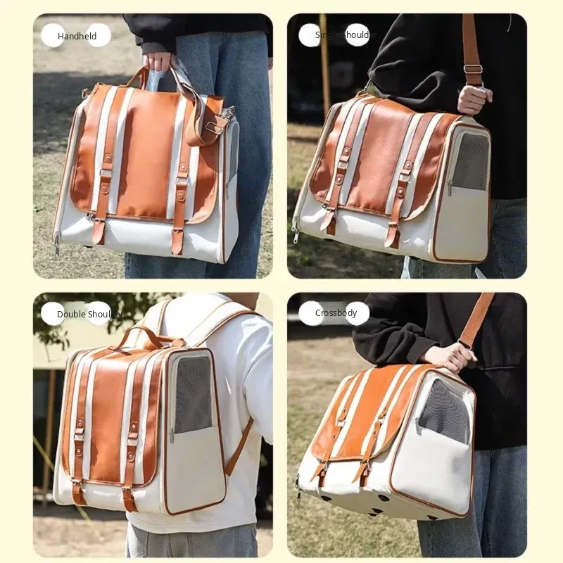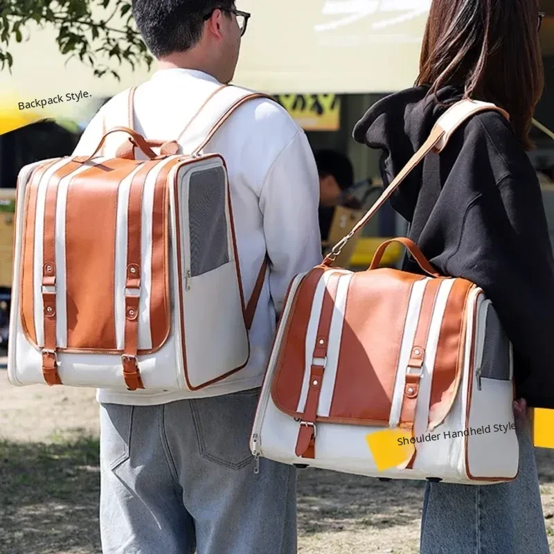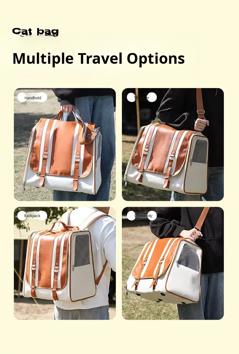 Portable Cat and Dog Carrier Backpack - Large Capacity Stress-Free Pet Bag for Small Dogs and Cats - Versatile Shoulder and Handheld Design for Easy Travel