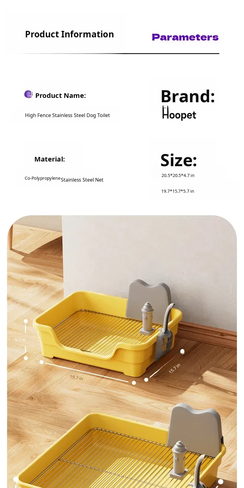 [15.75in*19.69in] Stainless Steel Mesh Dog Toilet-708.66inm Spacing