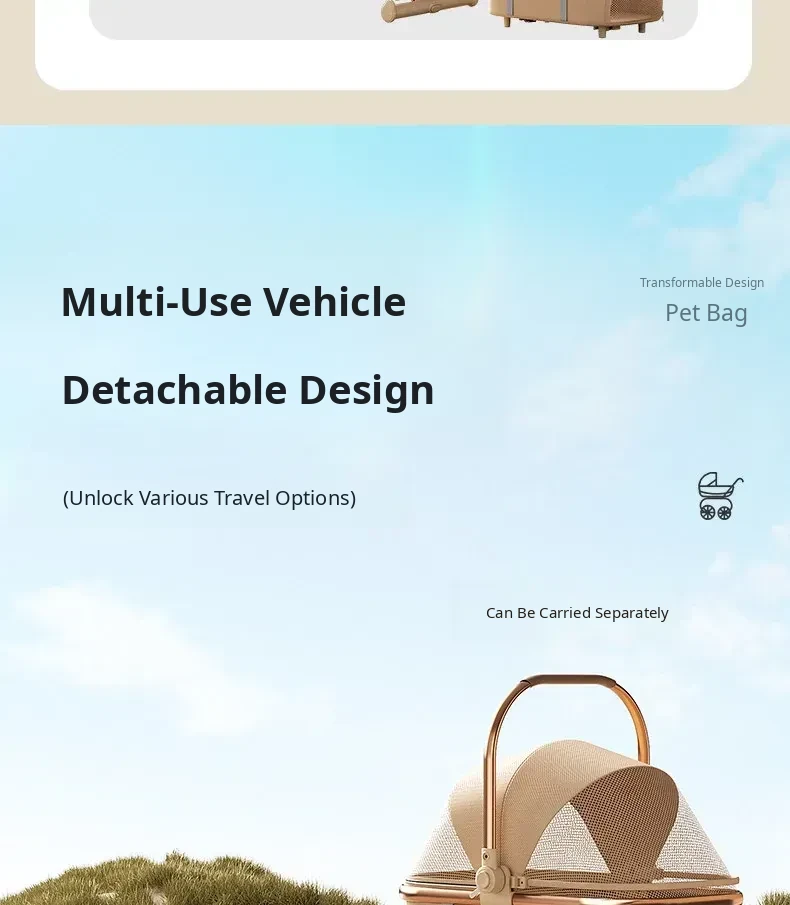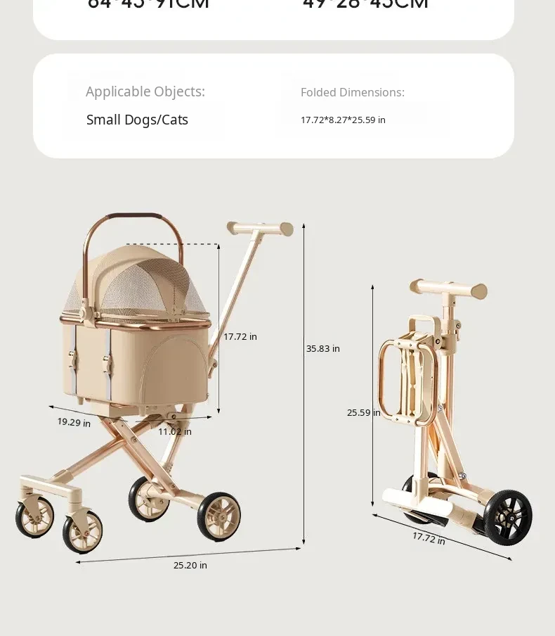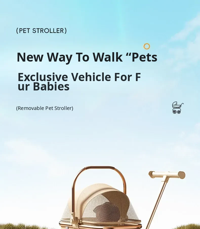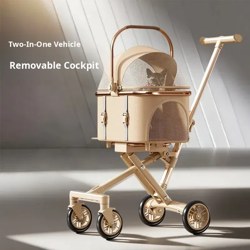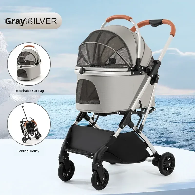 Portable Pet Stroller for Cats and Small Dogs - Foldable and Detachable Dog Walking Cart for Convenient Outdoor Adventures
