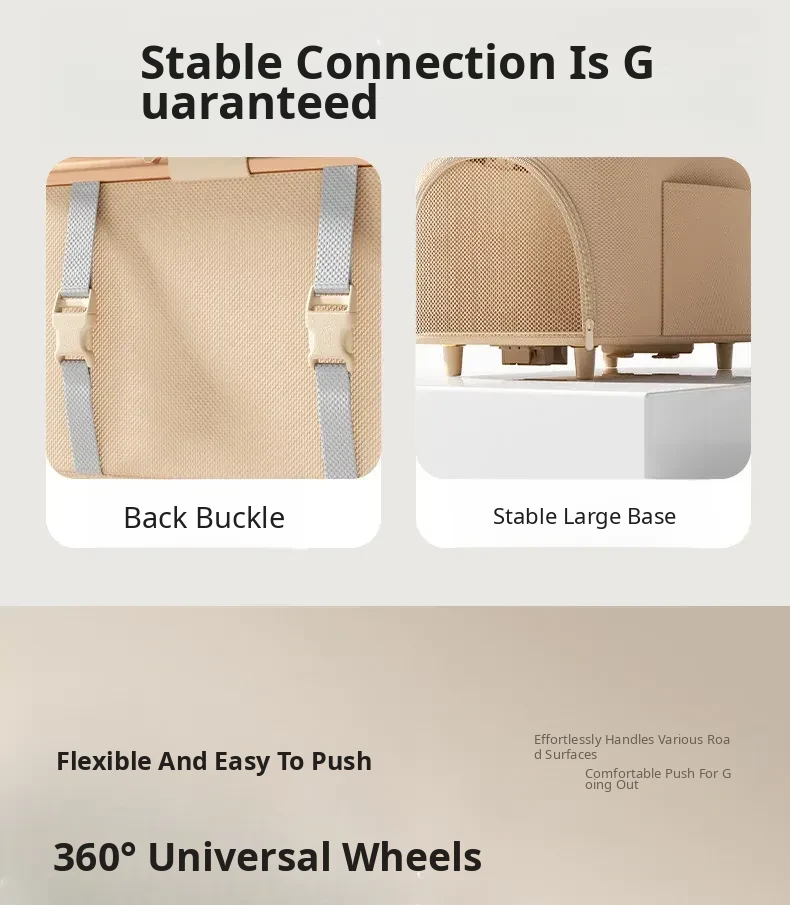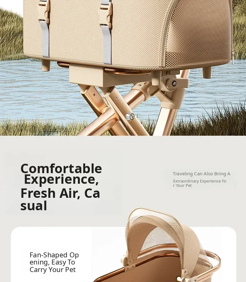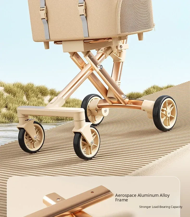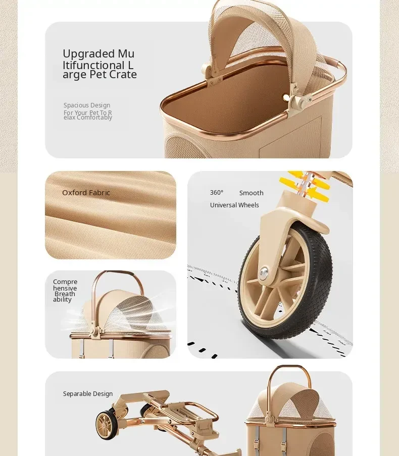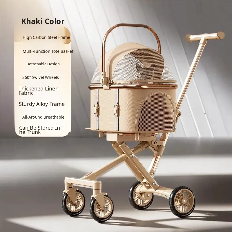 Khaki - High Carbon Steel Frame Detachable Pet Stroller