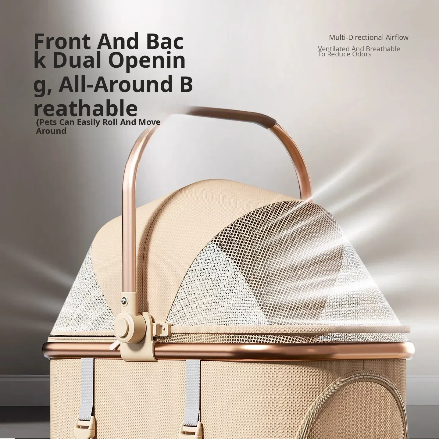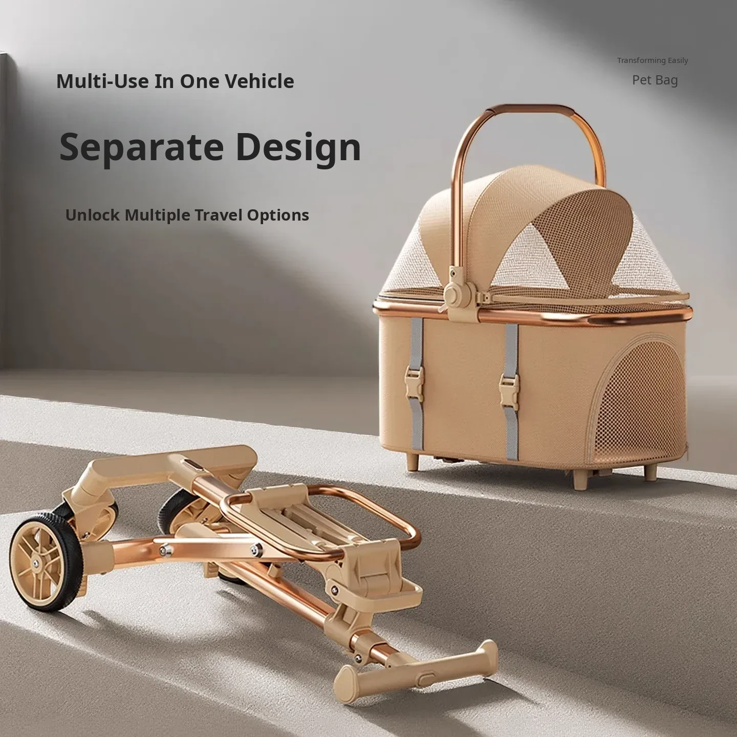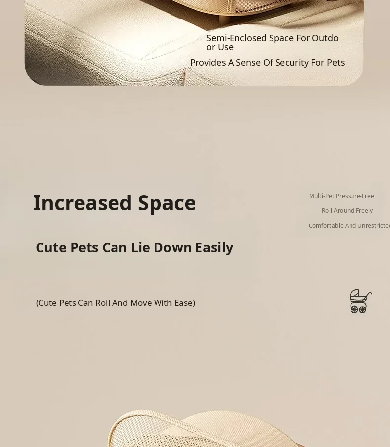 Khaki - High Carbon Steel Frame Detachable Pet Stroller