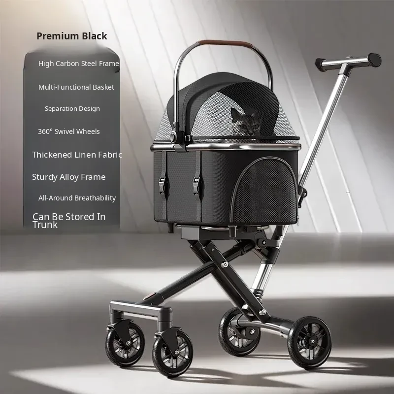 Black High-Carbon Steel Frame Detachable Pet Stroller