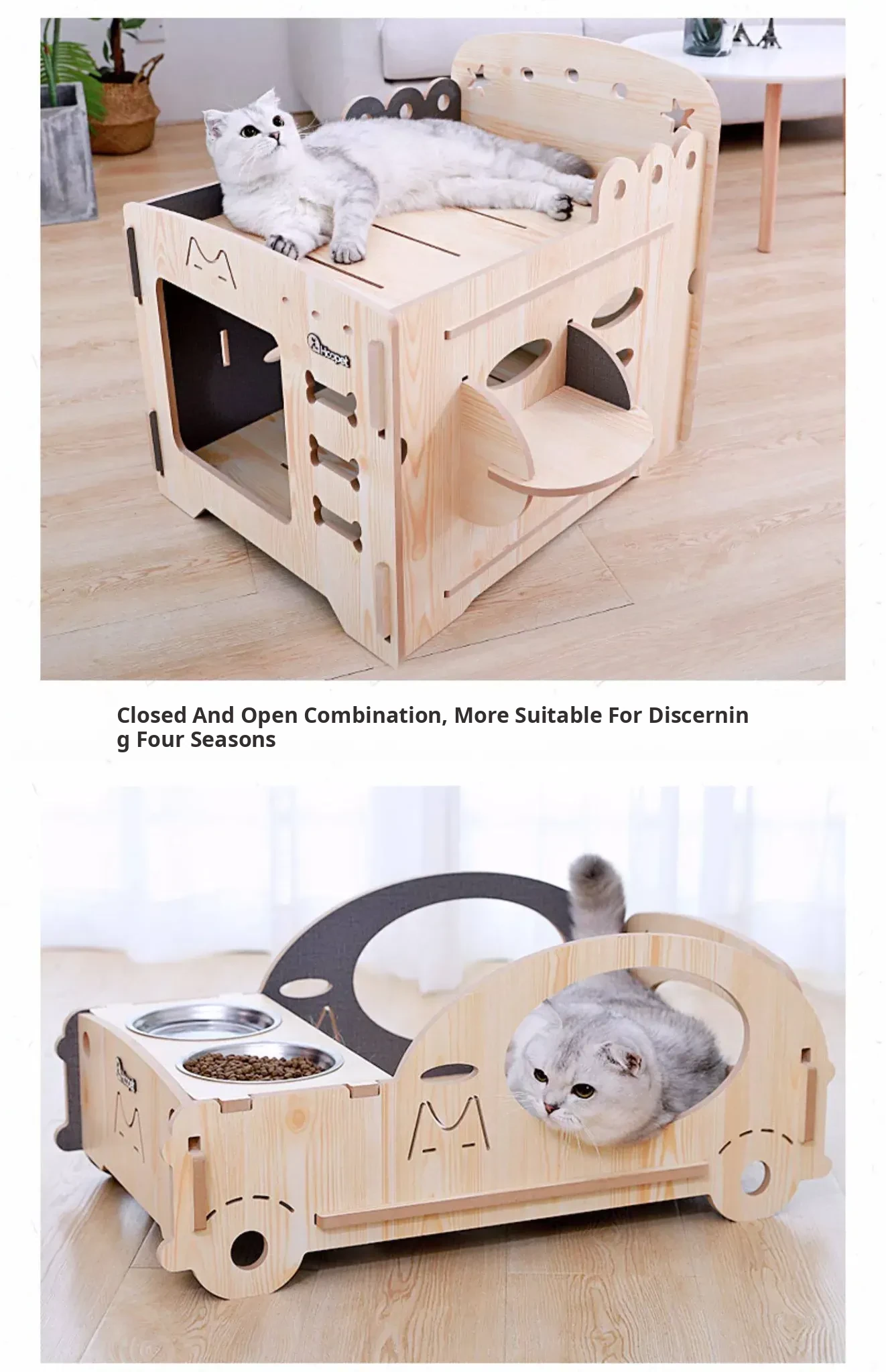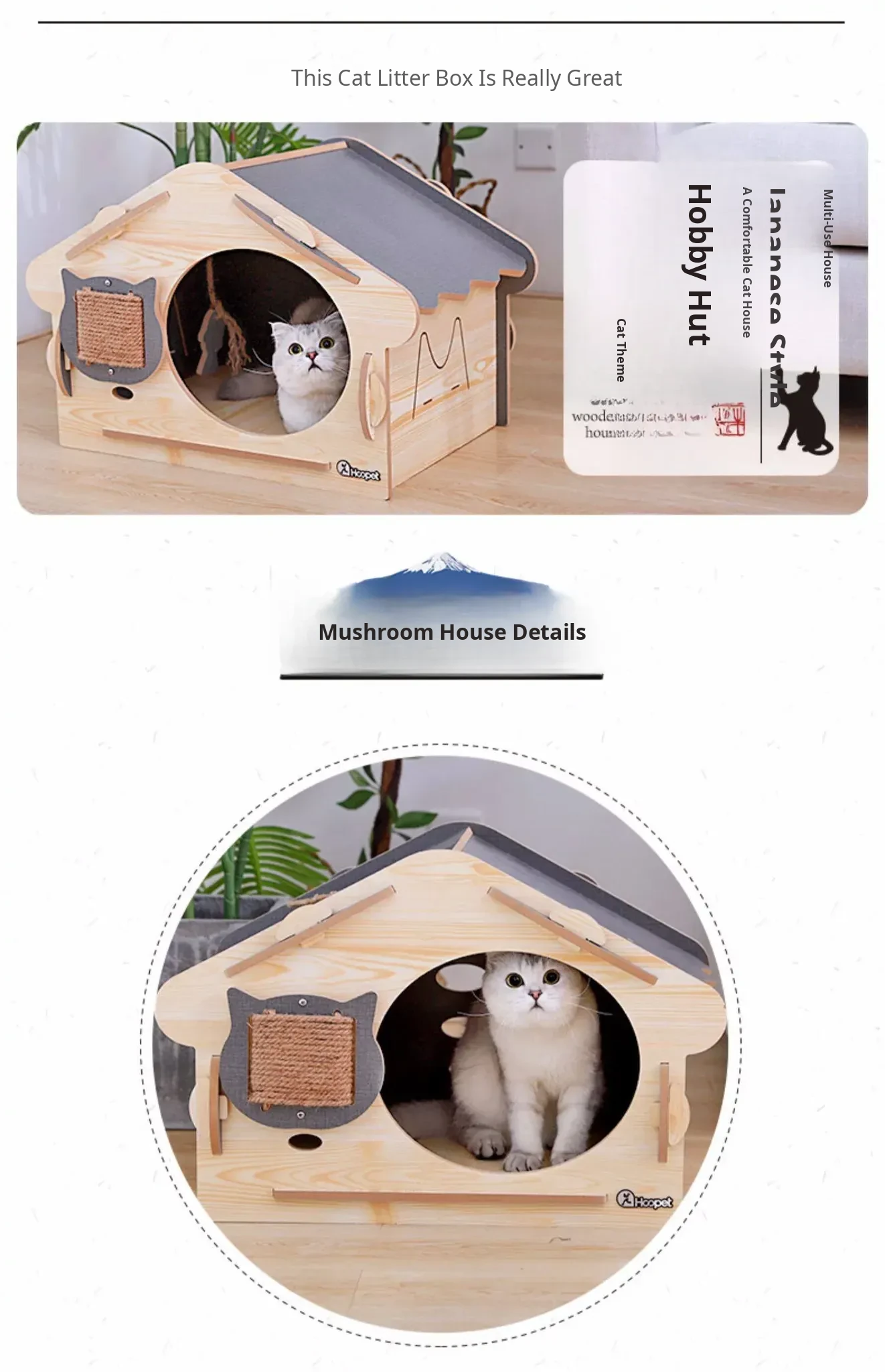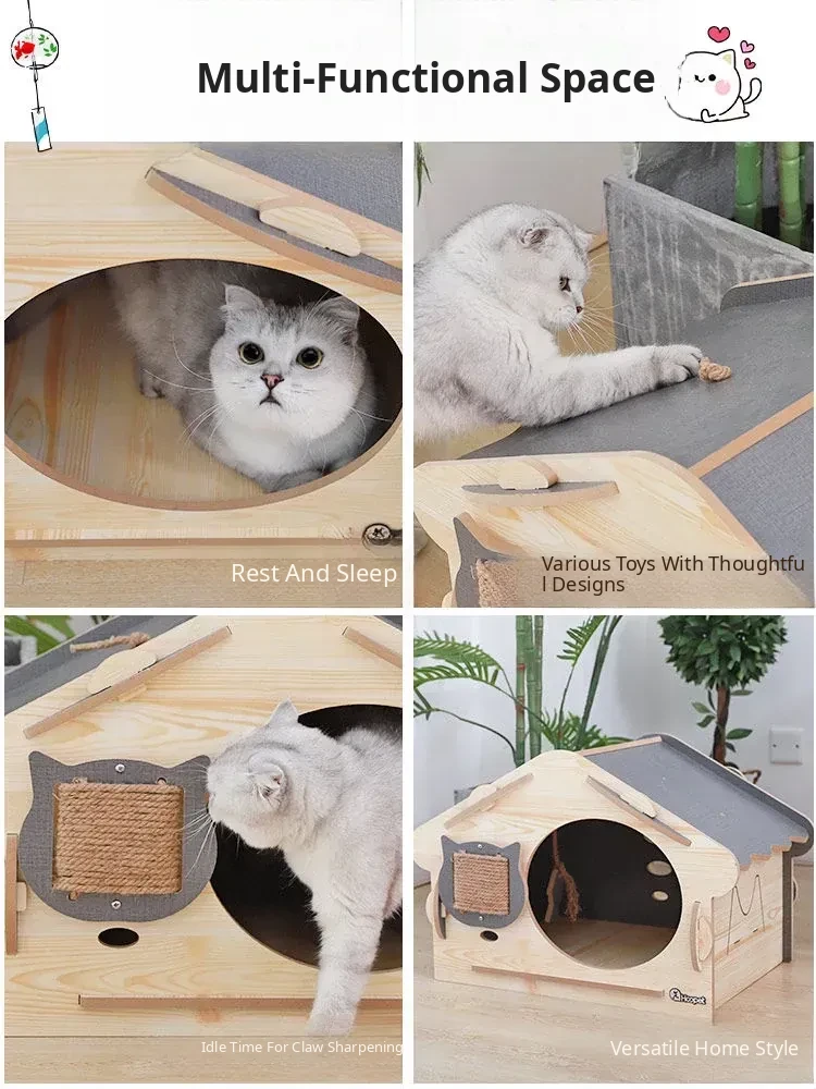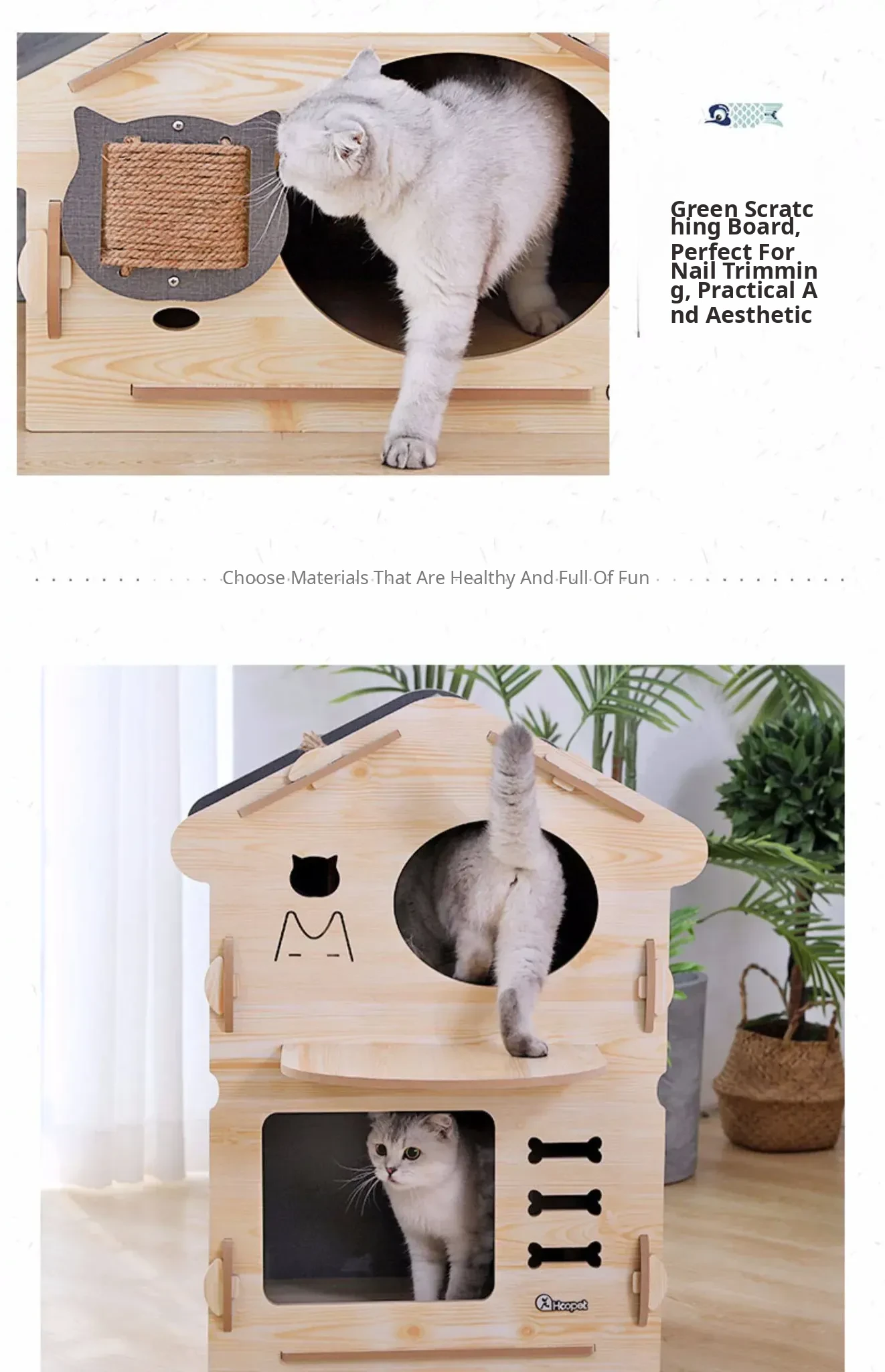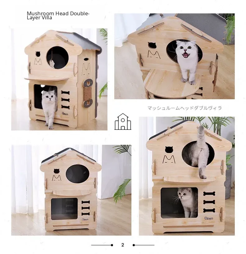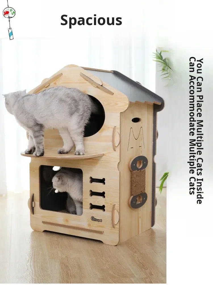 Stylish Double-Decker Cat House - Cozy Wooden Villa for Cats, Perfect for All Seasons, Enclosed Design for Ultimate Comfort, Ideal for Trendy Pet Lovers!