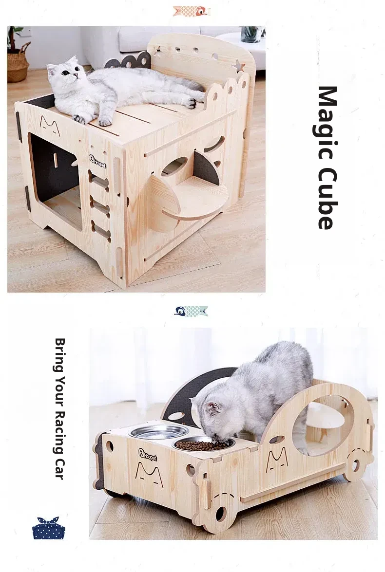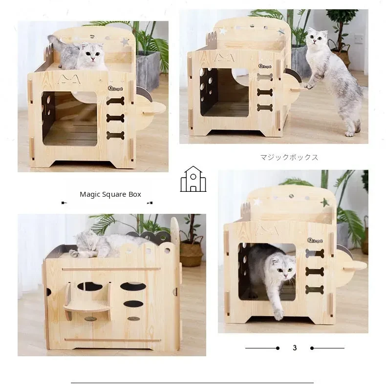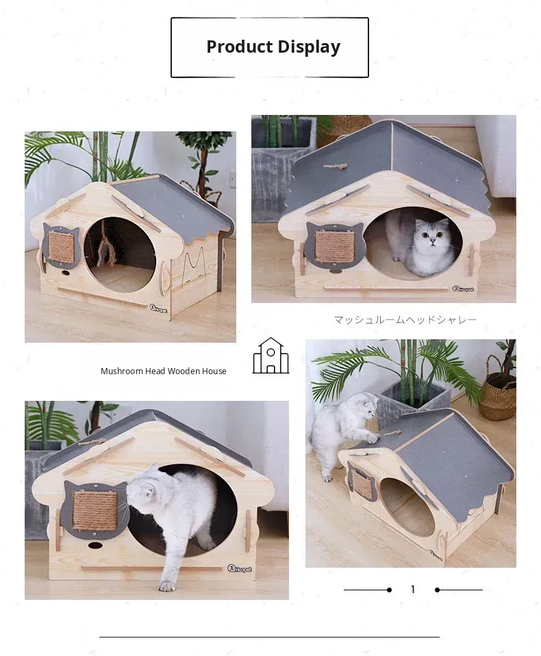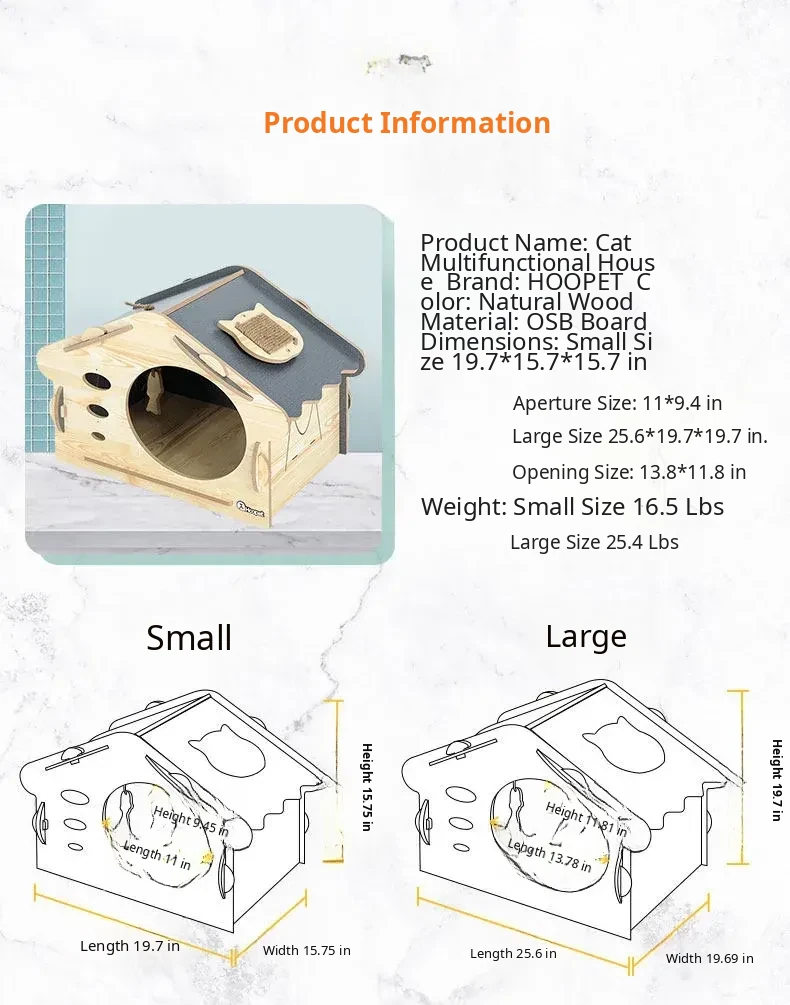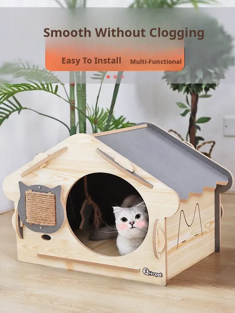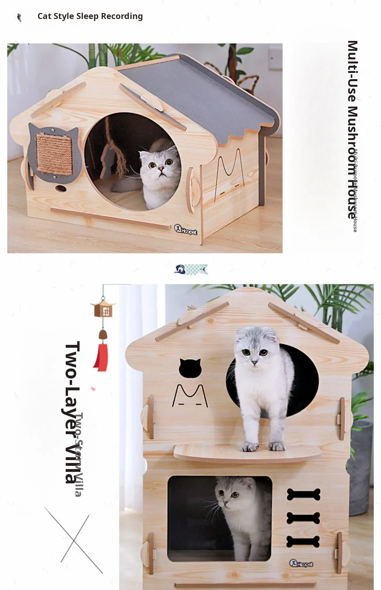 Stylish Double-Decker Cat House - Cozy Wooden Villa for Cats, Perfect for All Seasons, Enclosed Design for Ultimate Comfort, Ideal for Trendy Pet Lovers!
