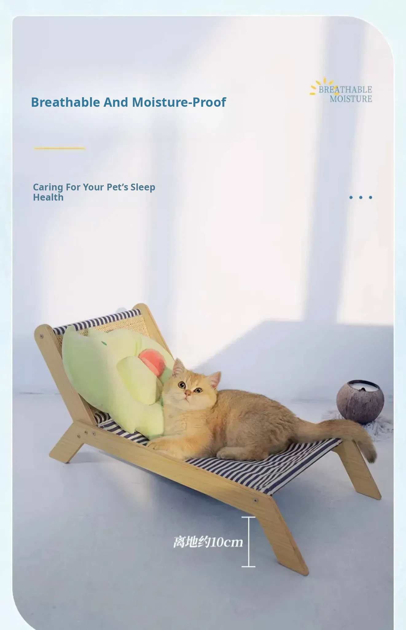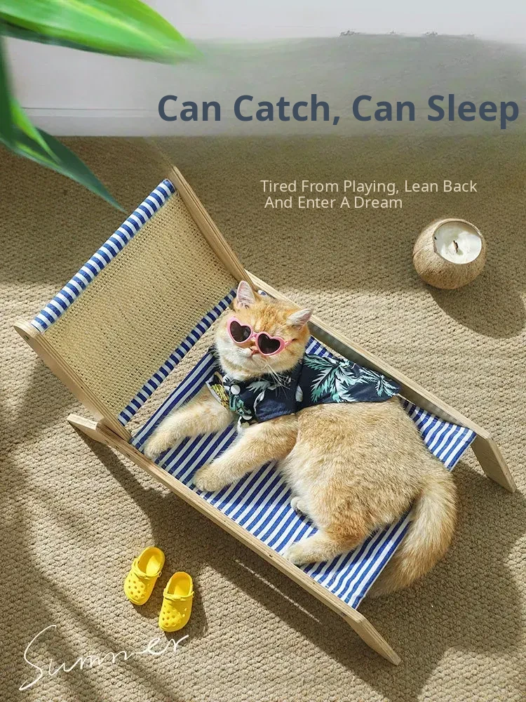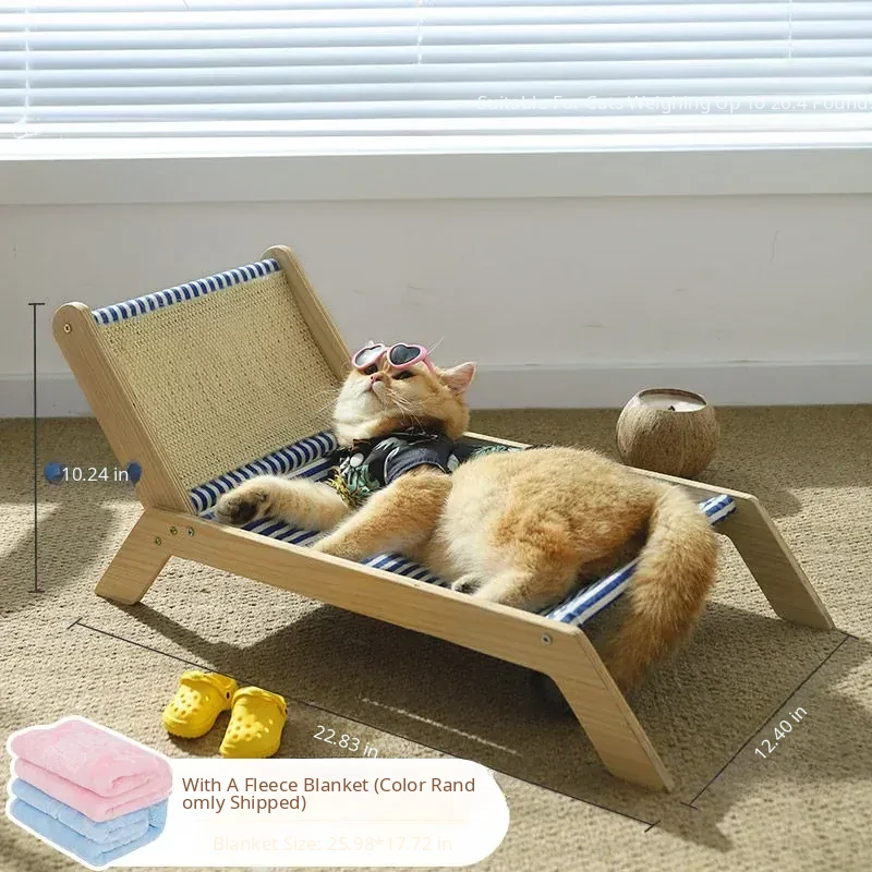 Summer Cat Bed - Elevated Pet Sofa for Cats, Moisture-Proof, All-Season Use with Scratching Board, Perfect for Lazy Summer Days!