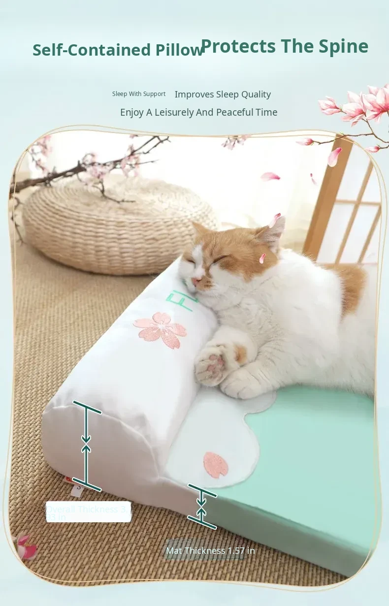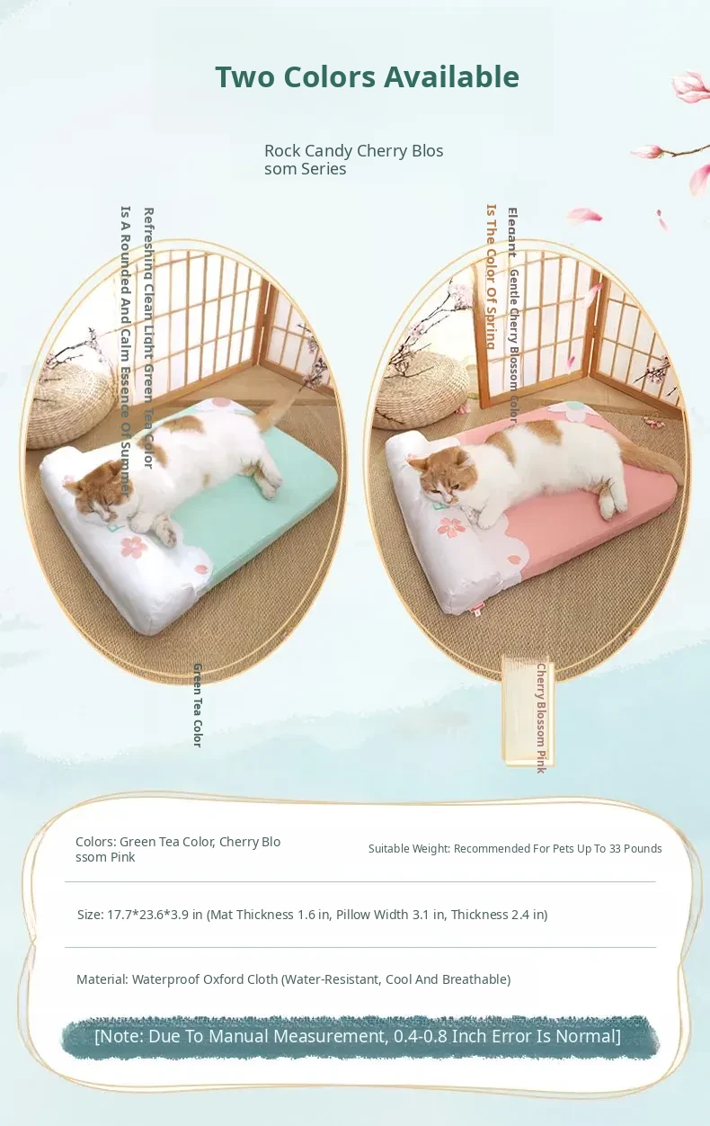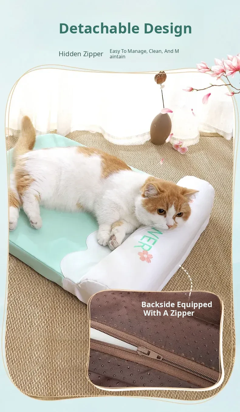 Refreshing Cat Mat with Pillow-(Sakura Pink)(The Thickness of the Mat Is 1.57in and It Is Fully Detachable and Washable)