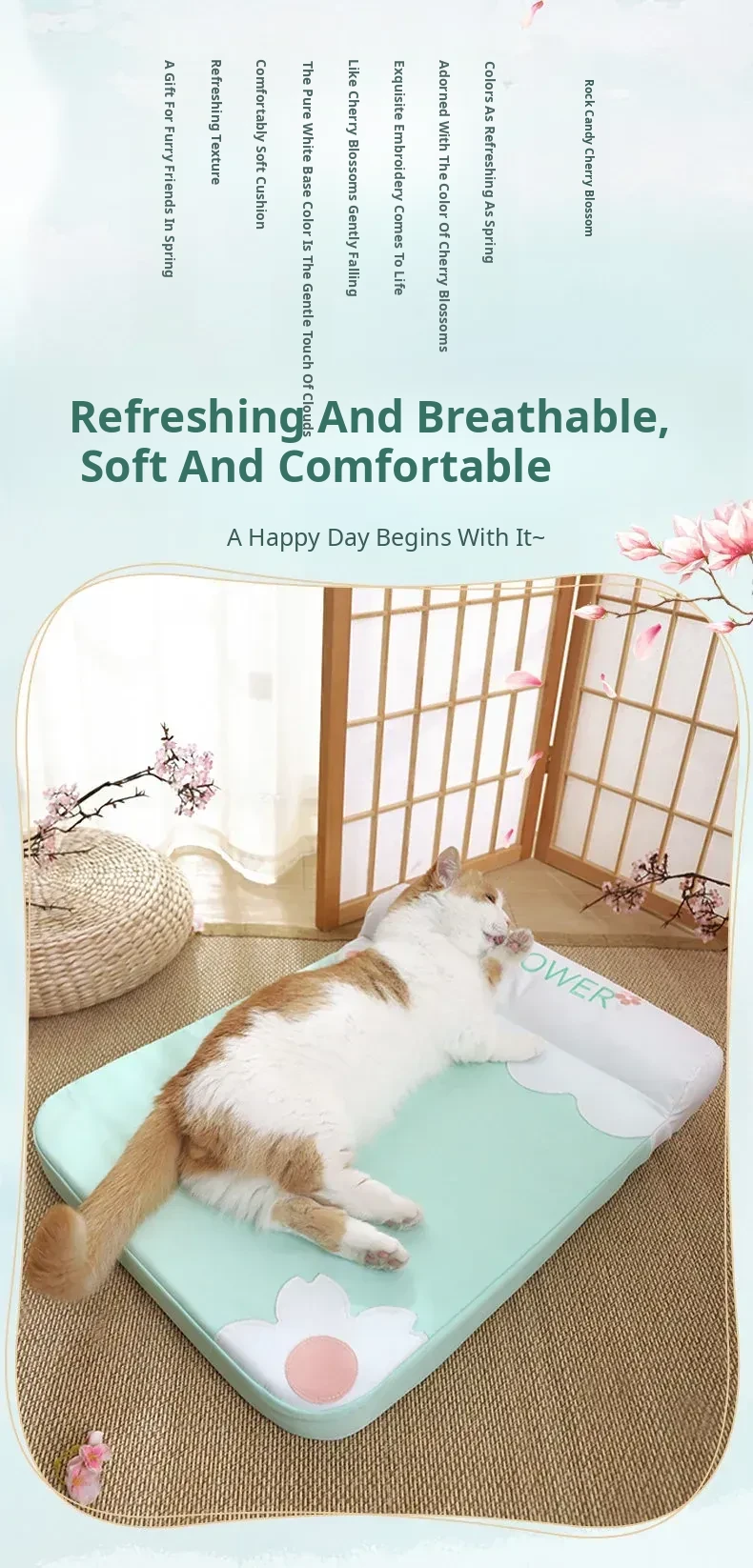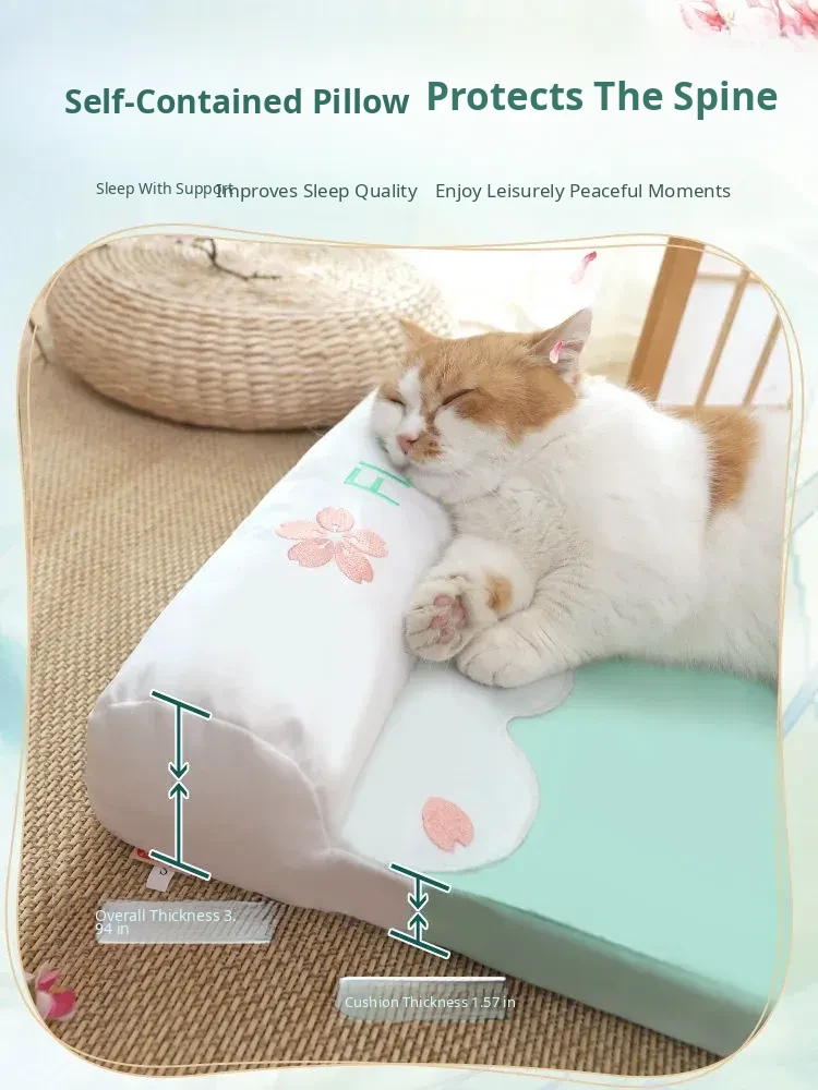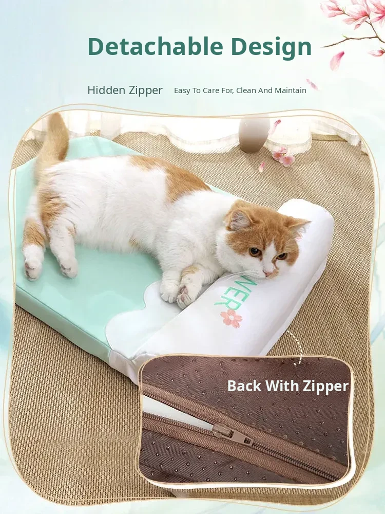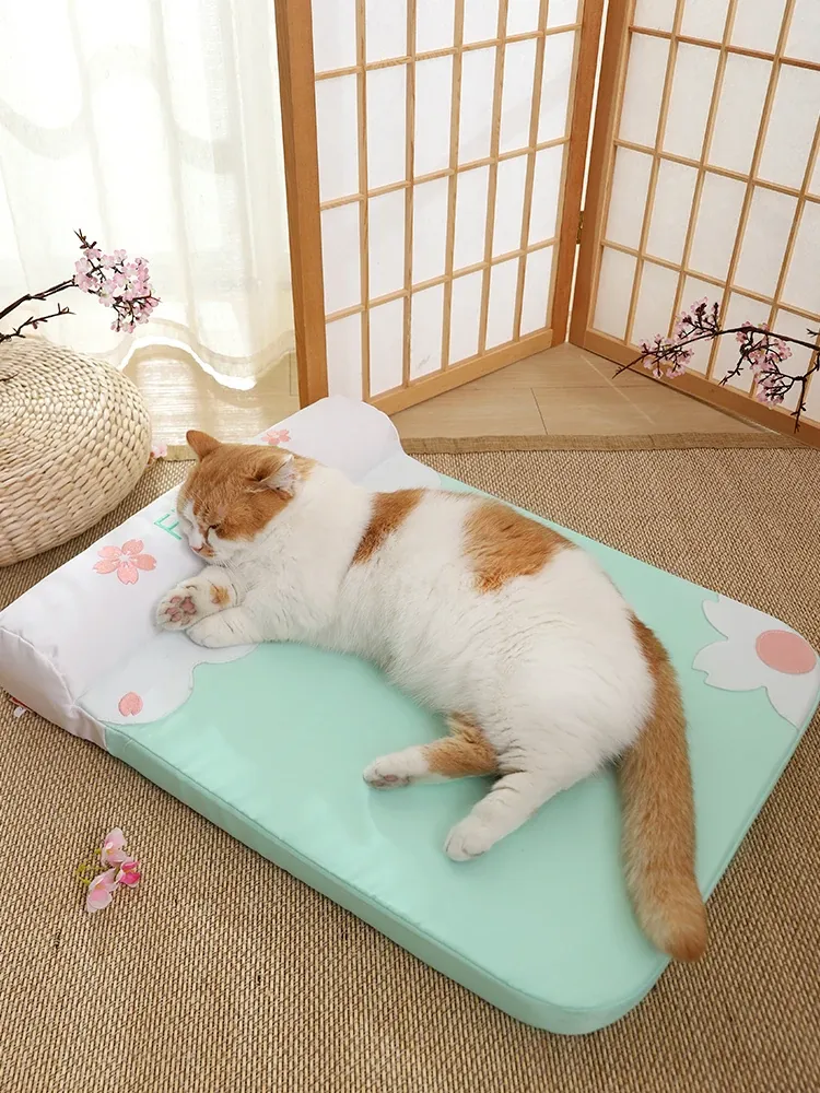 Refreshing Cat Mat with Pillow-(Sakura Pink)(The Thickness of the Mat Is 1.57in and It Is Fully Detachable and Washable)