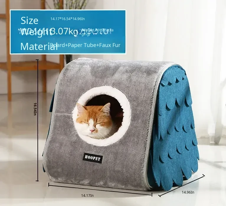 (Recoinended for 3.5kg Pets) Gray - Yurt Cat Nest for Winter Warmth