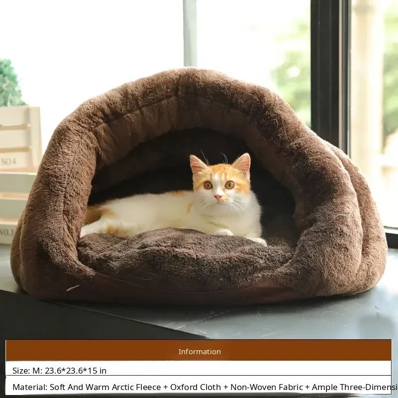 (Recoinended for 7.5kg Pets) Brown Pet Sleeping Bag Cat Nest Winterheattech