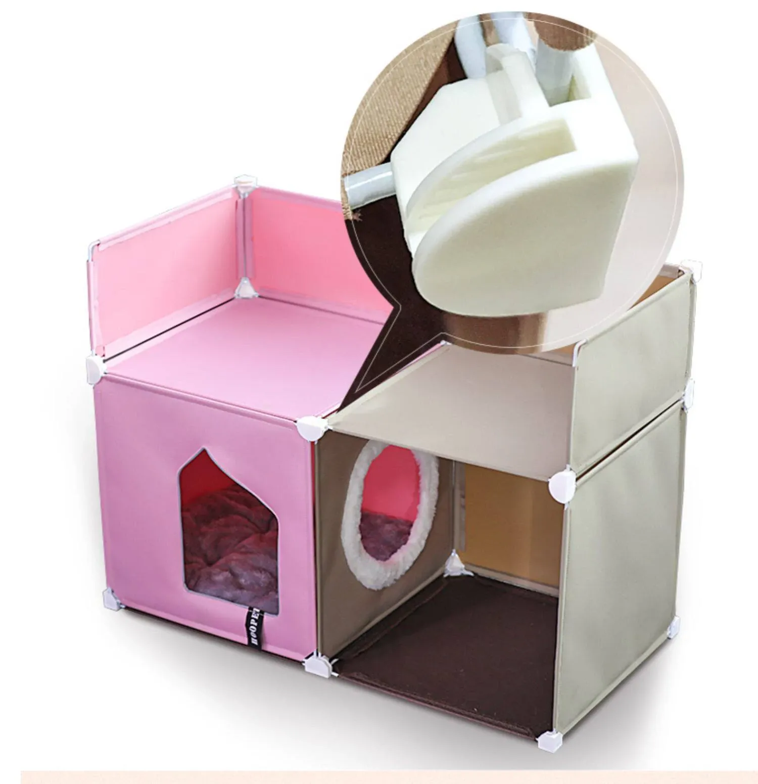 (Recoinended for Small Pets) Features a Pink, Double-Layered Cat Bed with a Cotton Pad for Winter Warmth