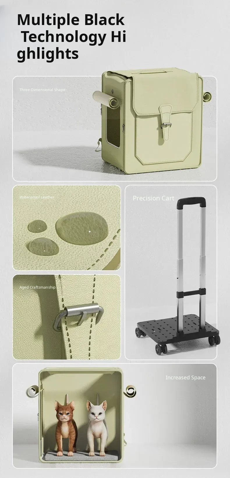 Waterproof & Scratch-Resistant Pet Carrier Backpack - Spacious Rolling Cat & Dog Travel Bag, Lightweight & Portable for Outdoor Adventures