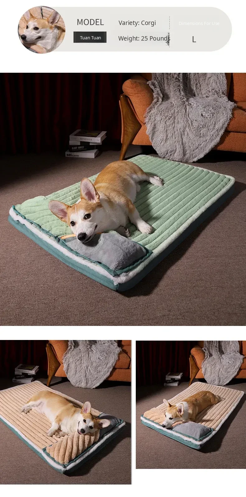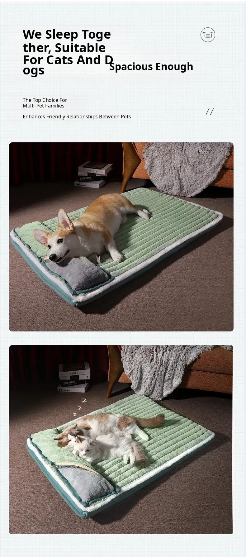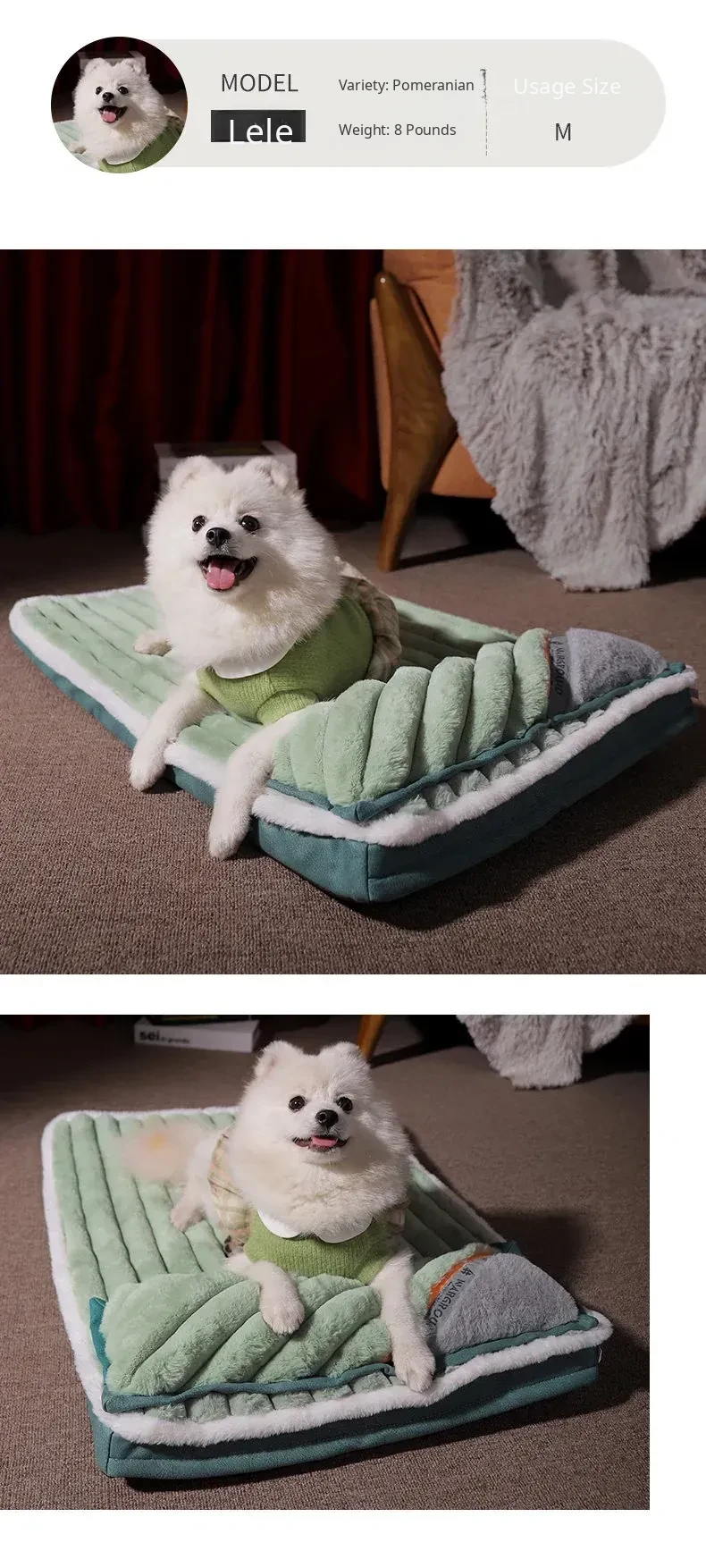 [Store Manager Recoinendation] Dog Mat Warm Rabbit Velvet with Pillow (Green)