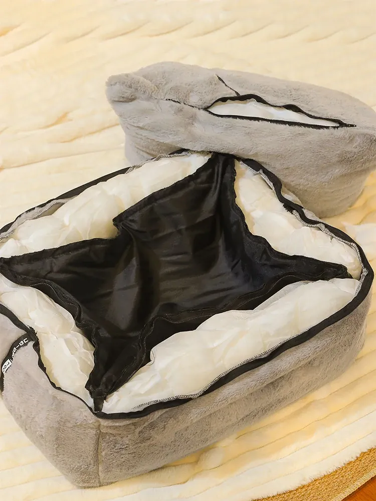 (Recoinended for 2.5kg Pets) Black - Faux Fur Plaid Dog House Winter Warmth