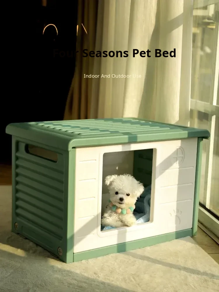 Indoor All-Season Dog Bed for Small Dogs and Cats - Enclosed Plastic Outdoor Dog House, Rainproof and Cozy Home for Your Furry Friends