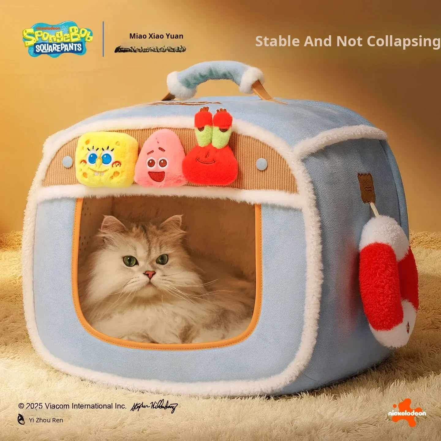 SpongeBob SquarePants Cozy Cat Bed - Winter-Ready Enclosed Cat House with Thick Padding for Ultimate Warmth and Comfort - Perfect Hideaway for Your Feline Friend