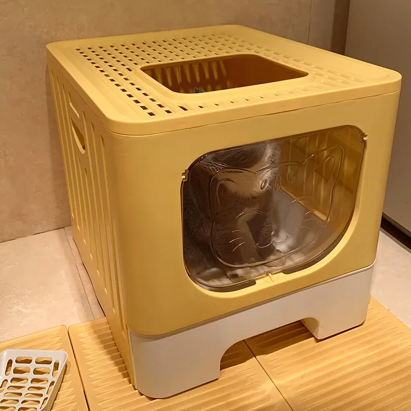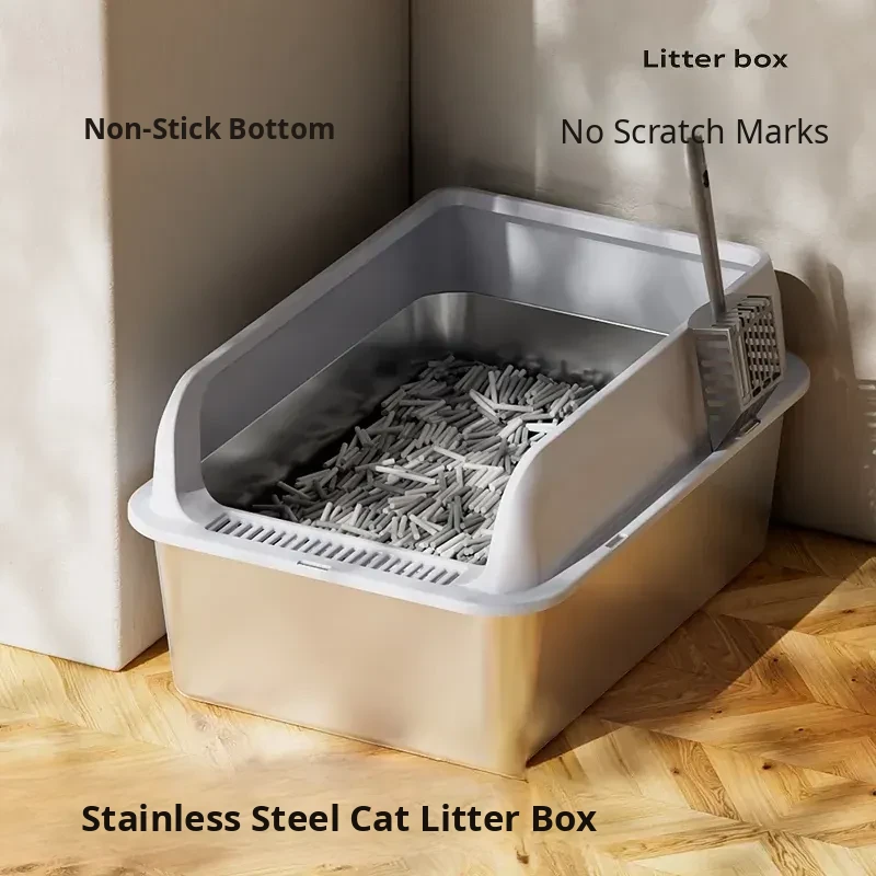 Extra Large Stainless Steel Cat Litter Box - Splash-Proof, Semi-Enclosed, Elevated Design for Odor Control and Easy Waste Disposal