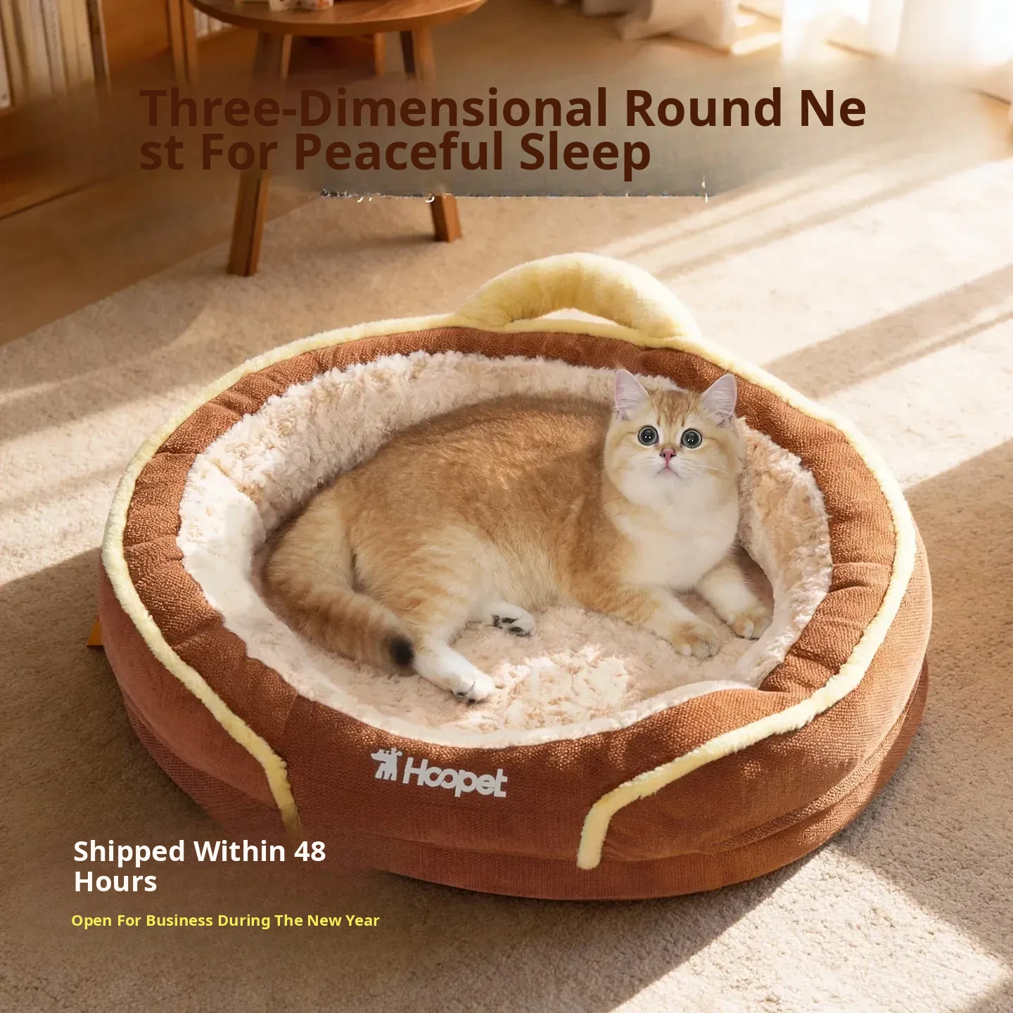 New Thickened All-Season Pet Bed - Cozy Round Winter Cat and Dog House, Removable and Washable for Ultimate Warmth and Comfort! Perfect for Your Furry Friends This Winter.