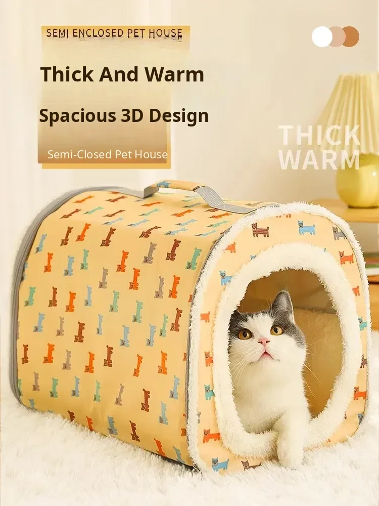 Cozy Semi-Enclosed Cat Bed for All Seasons - Safe and Secure Hideaway for Kittens, Plush Pad for Cats, Perfect for Winter Comfort