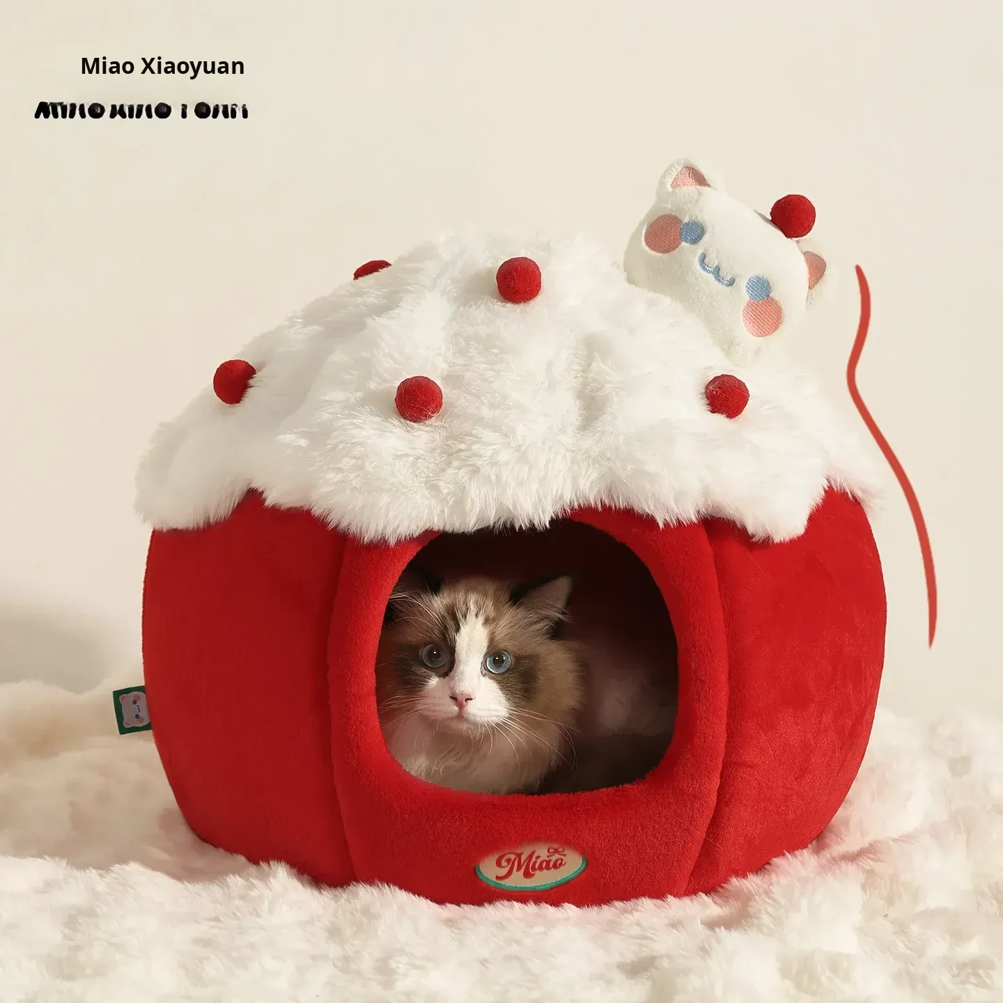 Cozy Winter Cat Bed - Thick Semi-Closed Design for Cats, Warm and Safe Nest for Kittens, Perfect Winter Sleeping Bag for Feline Friends