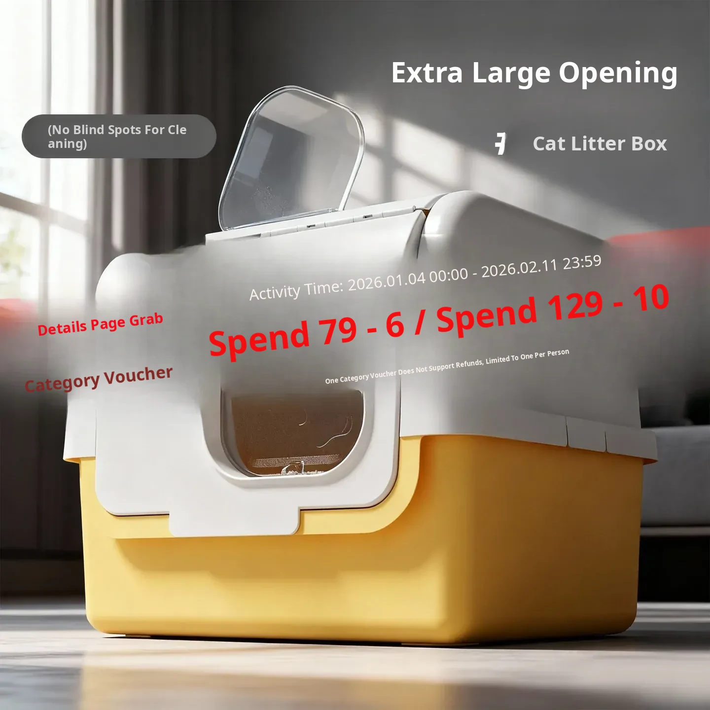Extra-Large Top-Entry Cat Litter Box with Anti-Splash Design - Semi-Enclosed, Odor-Controlled, Ideal for Pet Cats - Keeps Your Home Clean and Fresh!