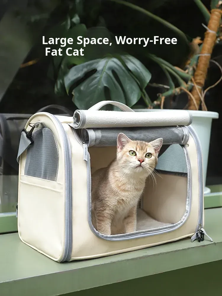 Portable Pet Carrier with Skylight for Cats and Small Dogs - Ideal for Travel, Car Use, and Outdoor Adventures - Space-Saving Design for Comfort and Safety