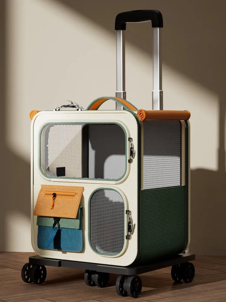 Large Capacity Cat and Dog Backpack - Portable Dual-Shoulder Pet Carrier for Two Cats or Dogs, Airline Approved Luggage with Wheels, Perfect for Travel and Outdoor Adventures