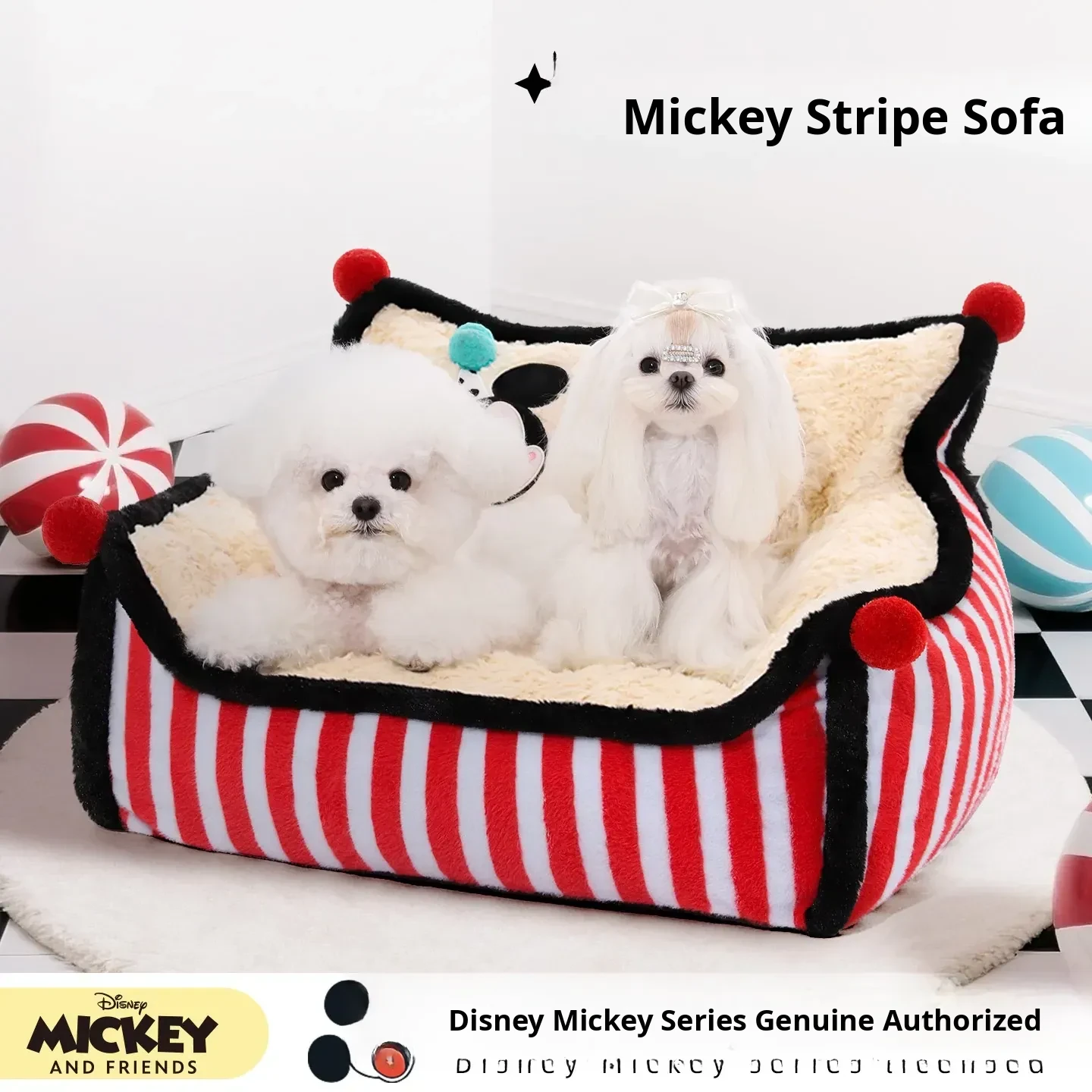 Disney Mickey Striped Sofa Dog Bed - Cozy Winter Sleeping Nest for Dogs and Cats, Universal for All Seasons