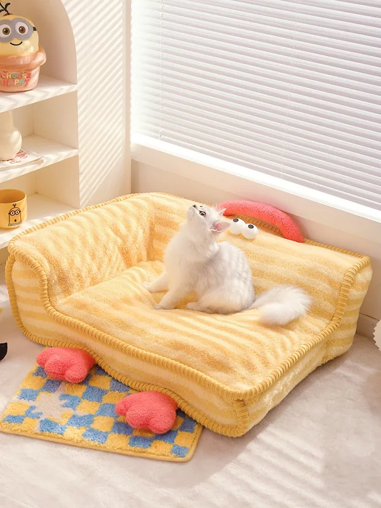 All-Season Removable and Washable Pet Sofa - Cozy Bed for Corgis, Cats, and Small Dogs - Perfect Winter Sleeping Mat for Your Furry Friend