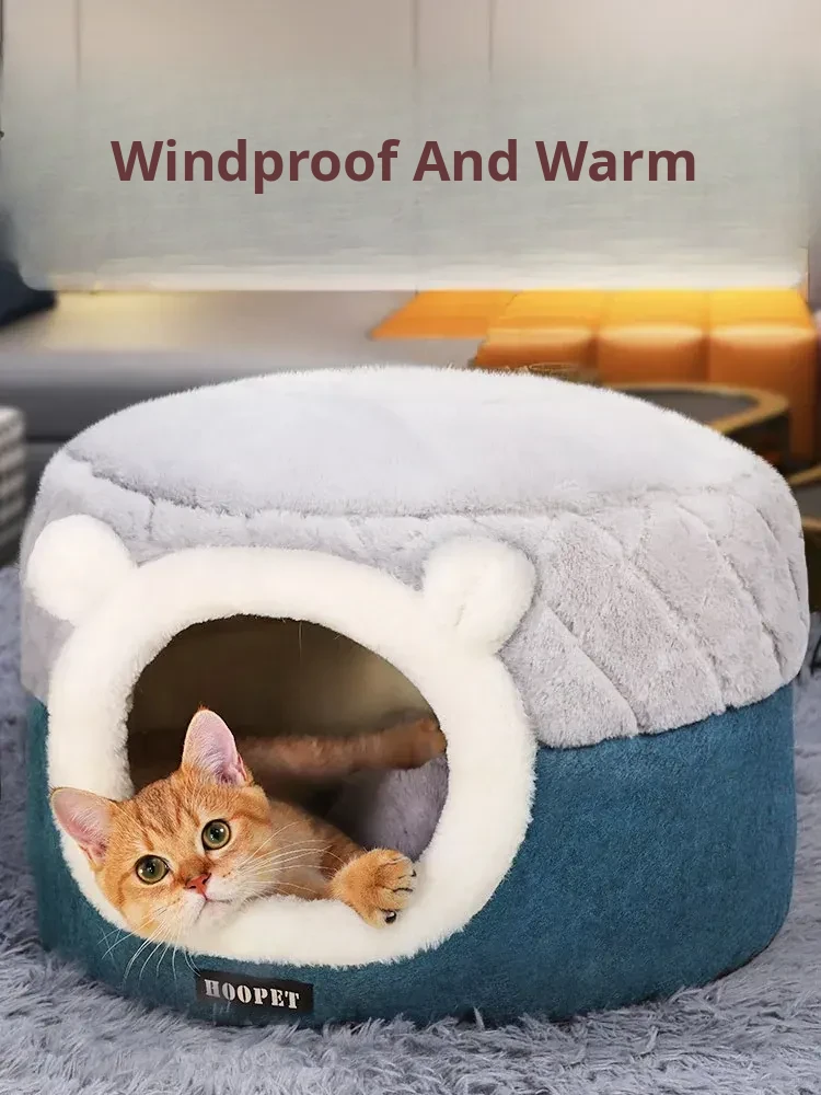 Cozy Winter Cat House - Fully Enclosed, Removable Washable Cat Bed with Thick Padding for Safety and Comfort - Perfect for Cats in Cold Weather