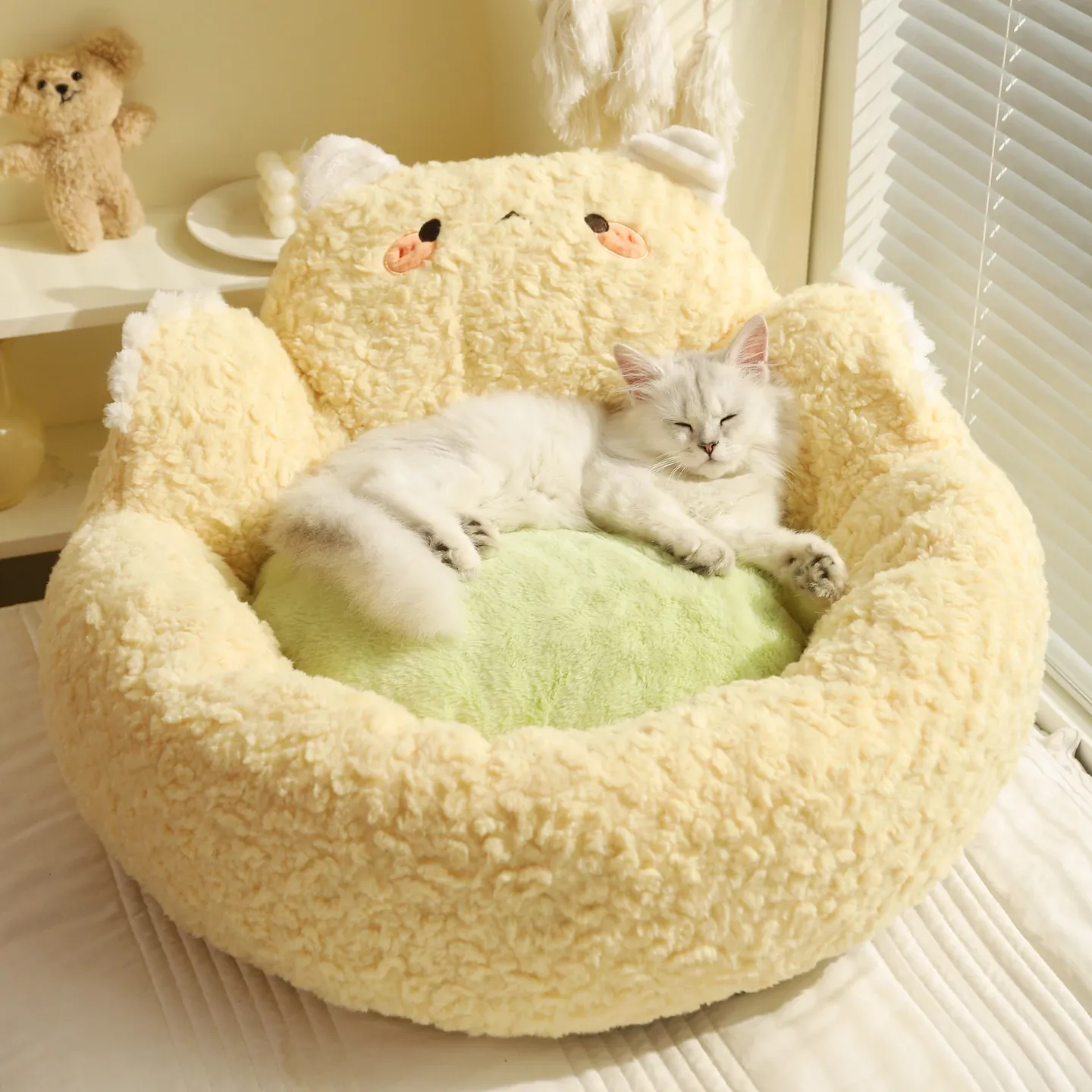 Cozy Cat Nest Bed with Thickened Cushion - Meow Xiaoyuan Cream-Filled Biscuits for Ragdoll Cats - Perfect Winter Sleeping Pad for Pets to Stay Warm and Comfortable