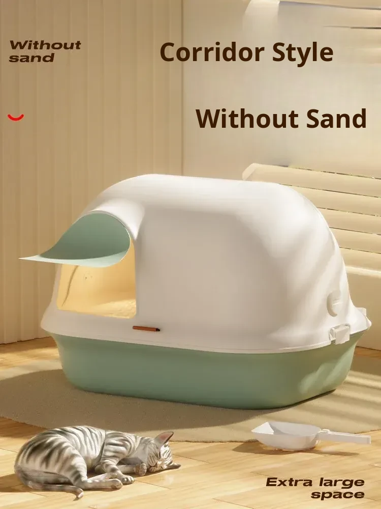 Extra Large Half-Enclosed Cat Litter Box with Splash-Proof Mat - Odor Control for Ragdoll Cats & Kittens - Essential Toilet Supplies for Your Feline Friend