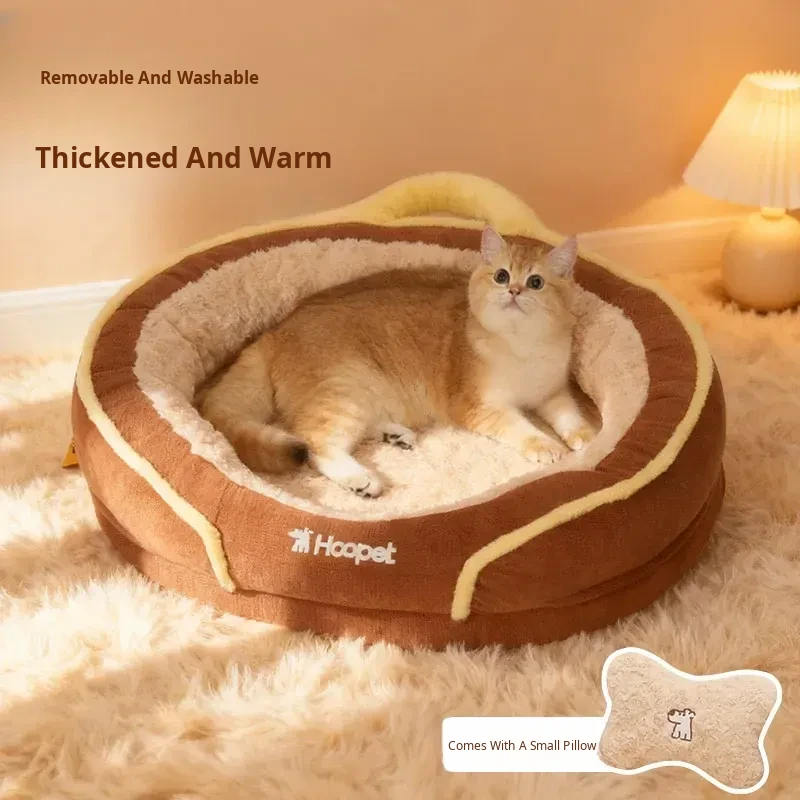 Hoopet Cozy Winter Cat Bed - Thickened Design for Small Dogs and Cats, All-Season Use, Removable and Washable, Perfect for Keeping Your Pets Warm in Winter