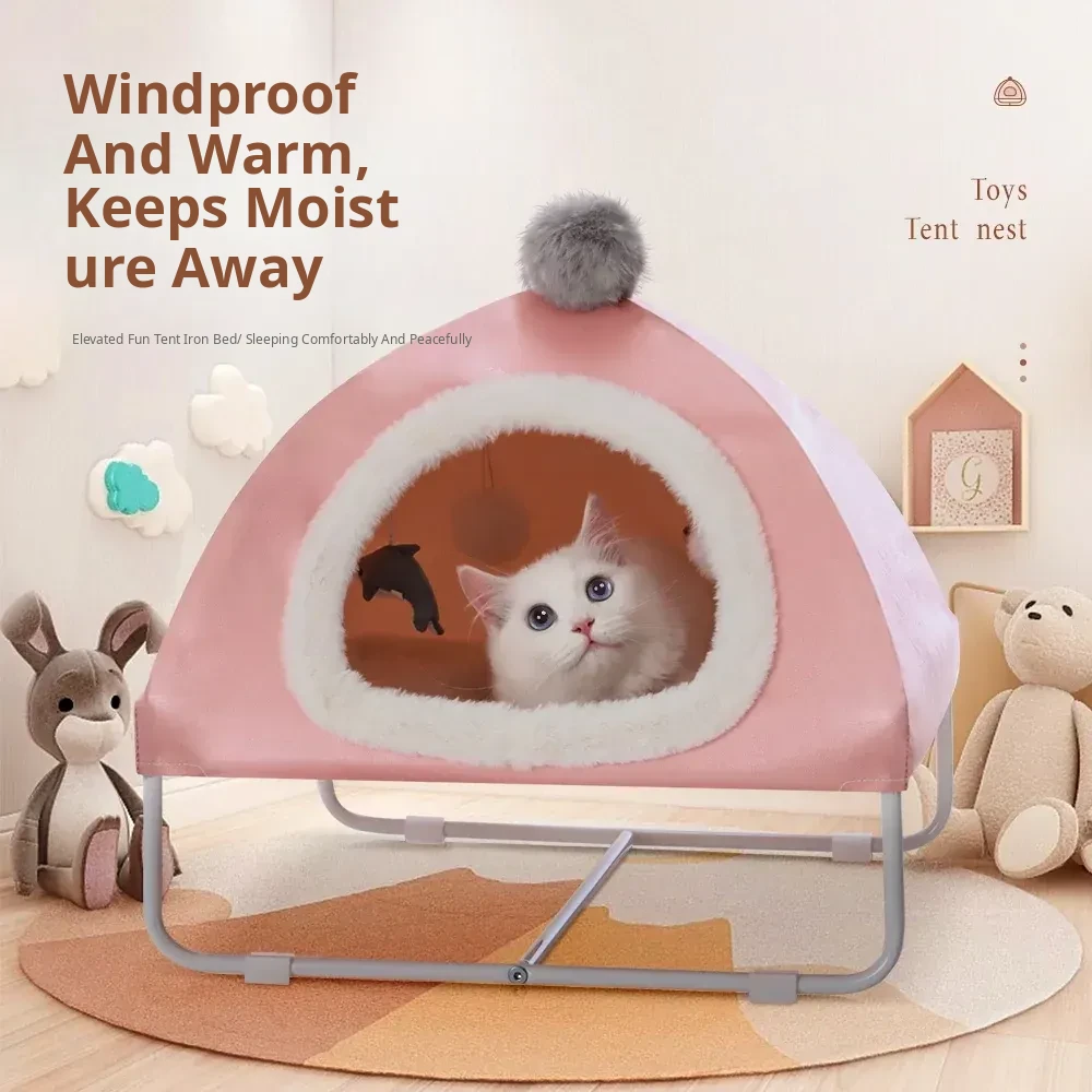 Cozy Elevated Cat Bed with Enclosed Design - Winter-Ready Villa for Kittens, All-Season Cat Tent, Ideal Cat Supplies for Your Feline Friend
