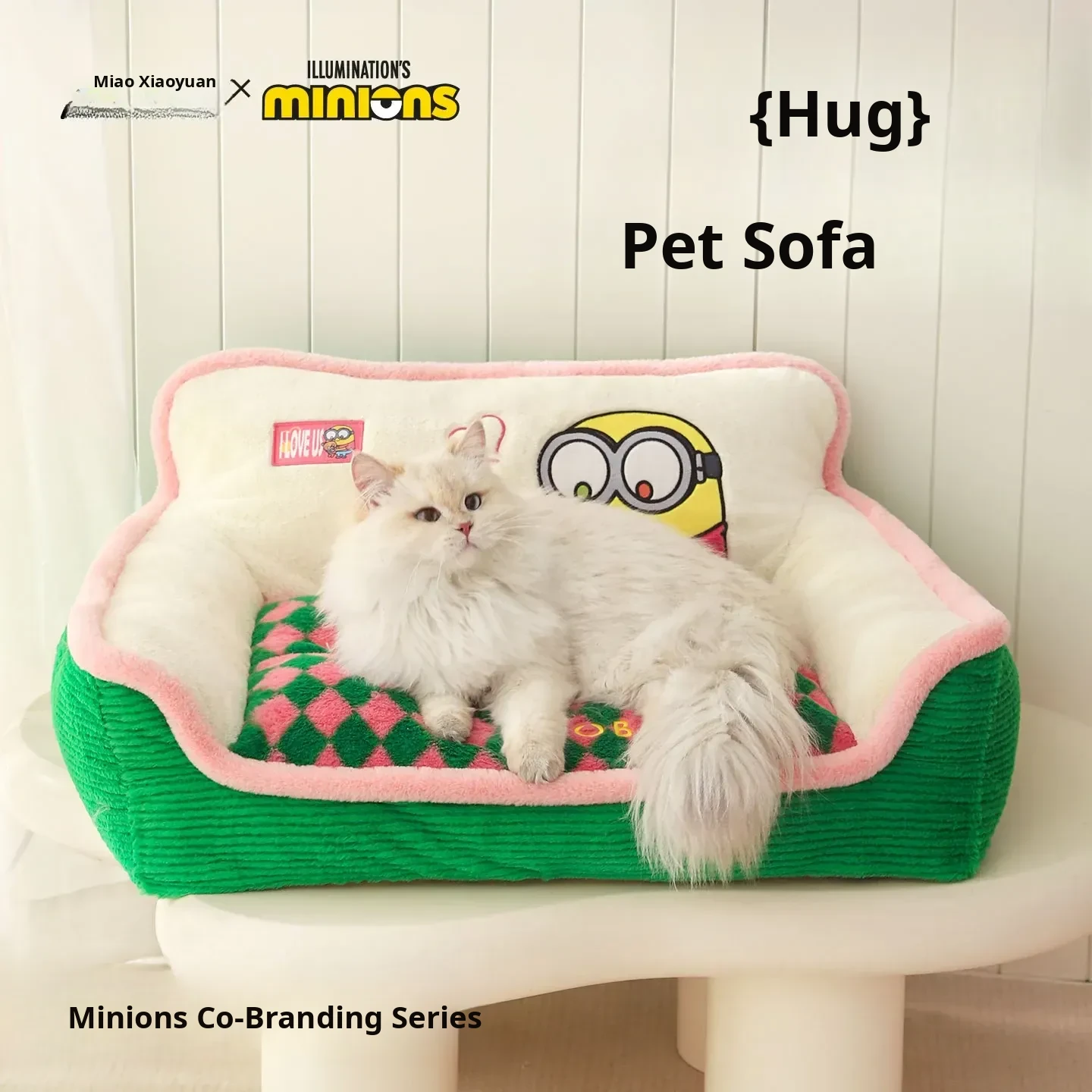 Meow Xiao Yuan Minions Collaboration Cozy Pet Sofa – Warm Cat and Dog Bed for Fall/Winter, Perfect for Corgi Naps and Snuggles!