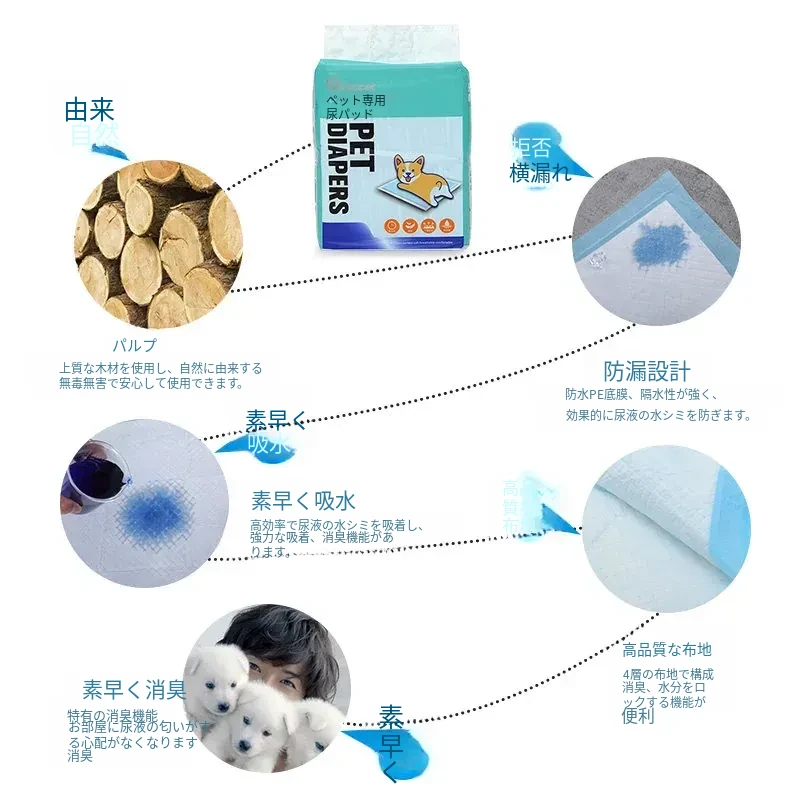 6パックのペット用犬猫用吸水性トイレシート!小犬やウサギも安心♪おしっこ漏れ防止で、愛するペットの快適さをサポート!トイレトレーニングもこれでバッチリ!