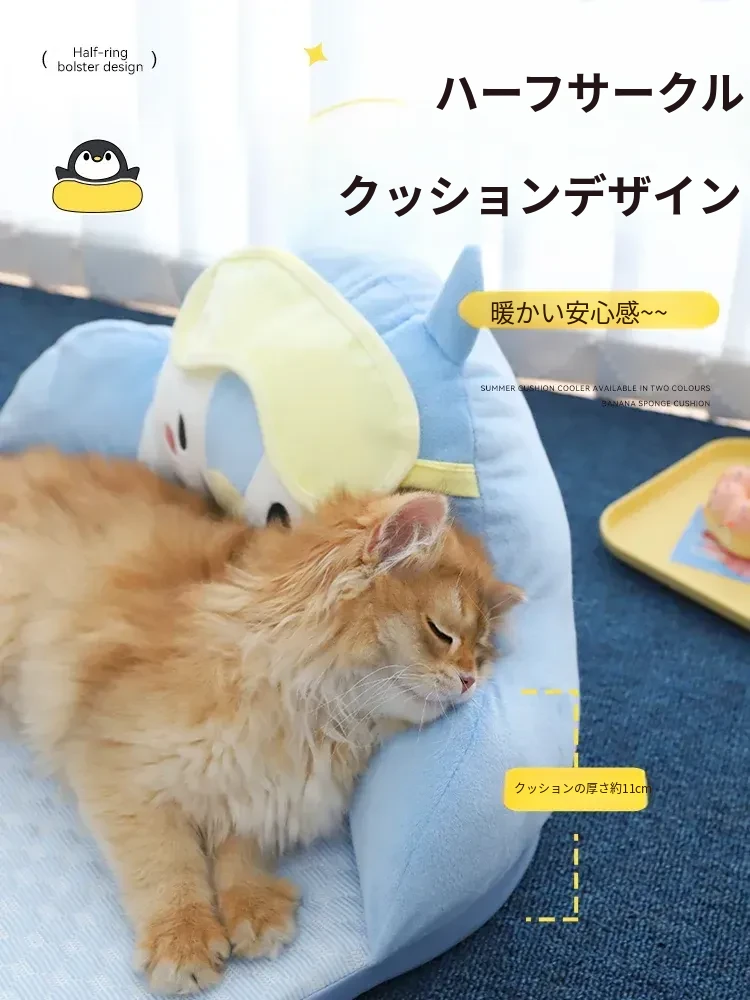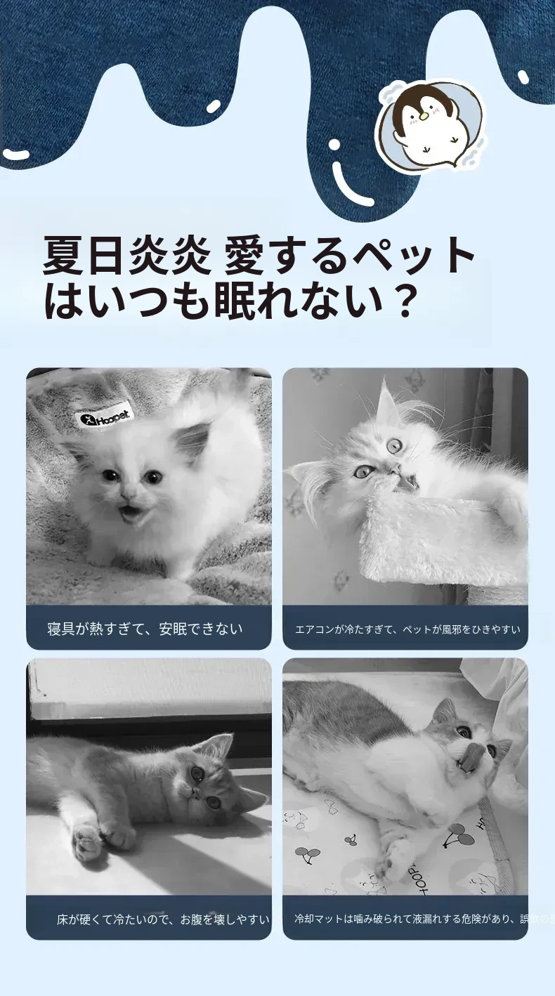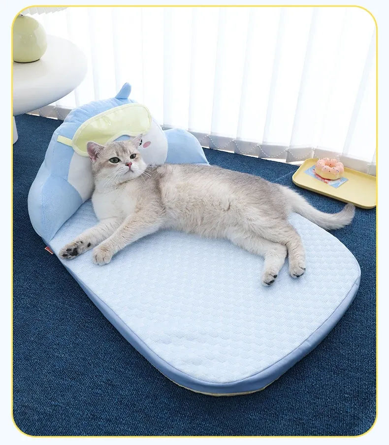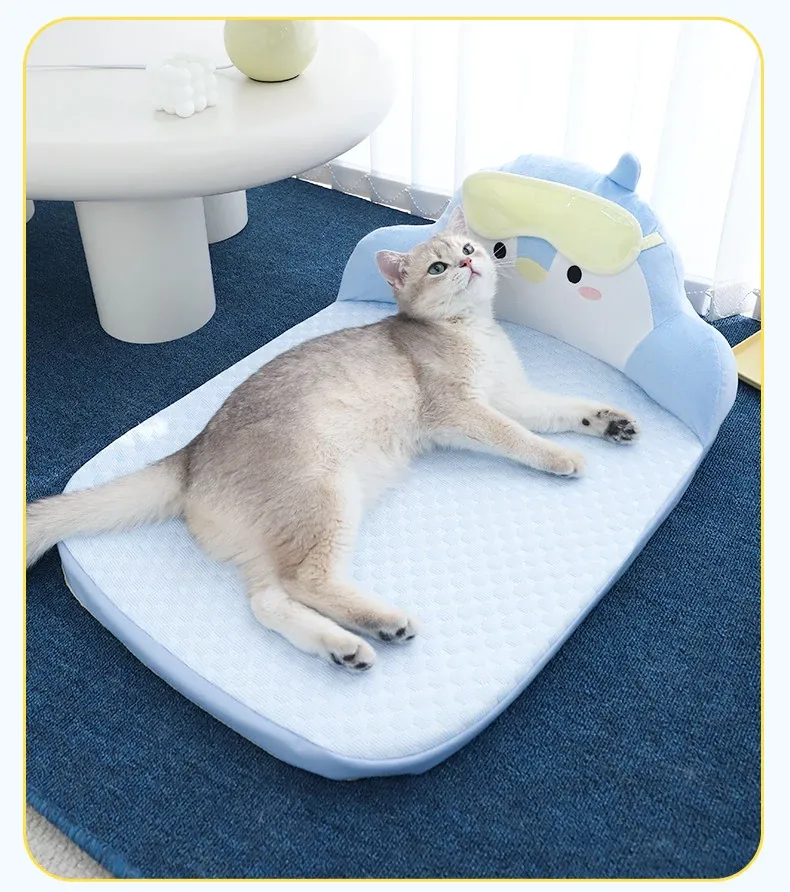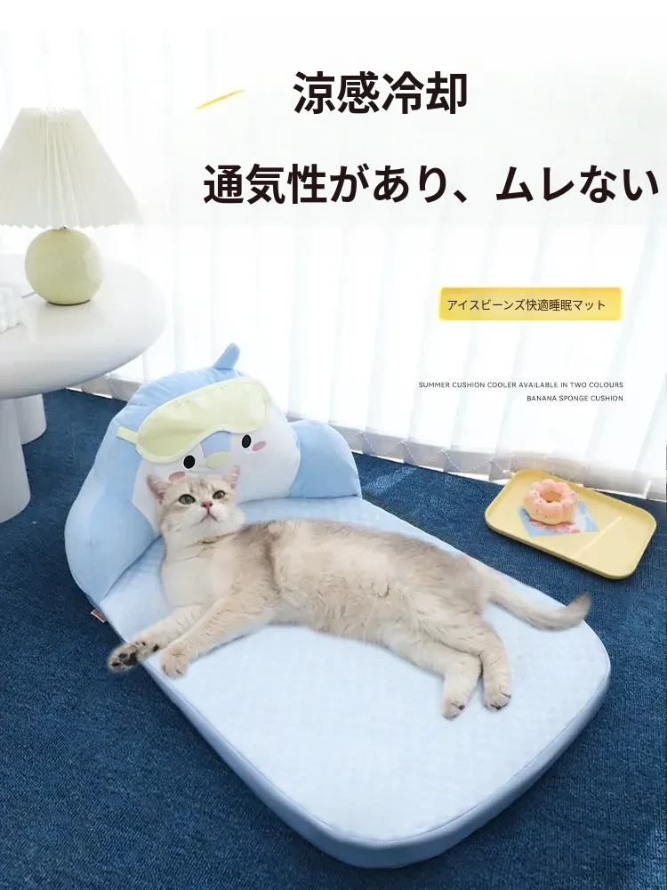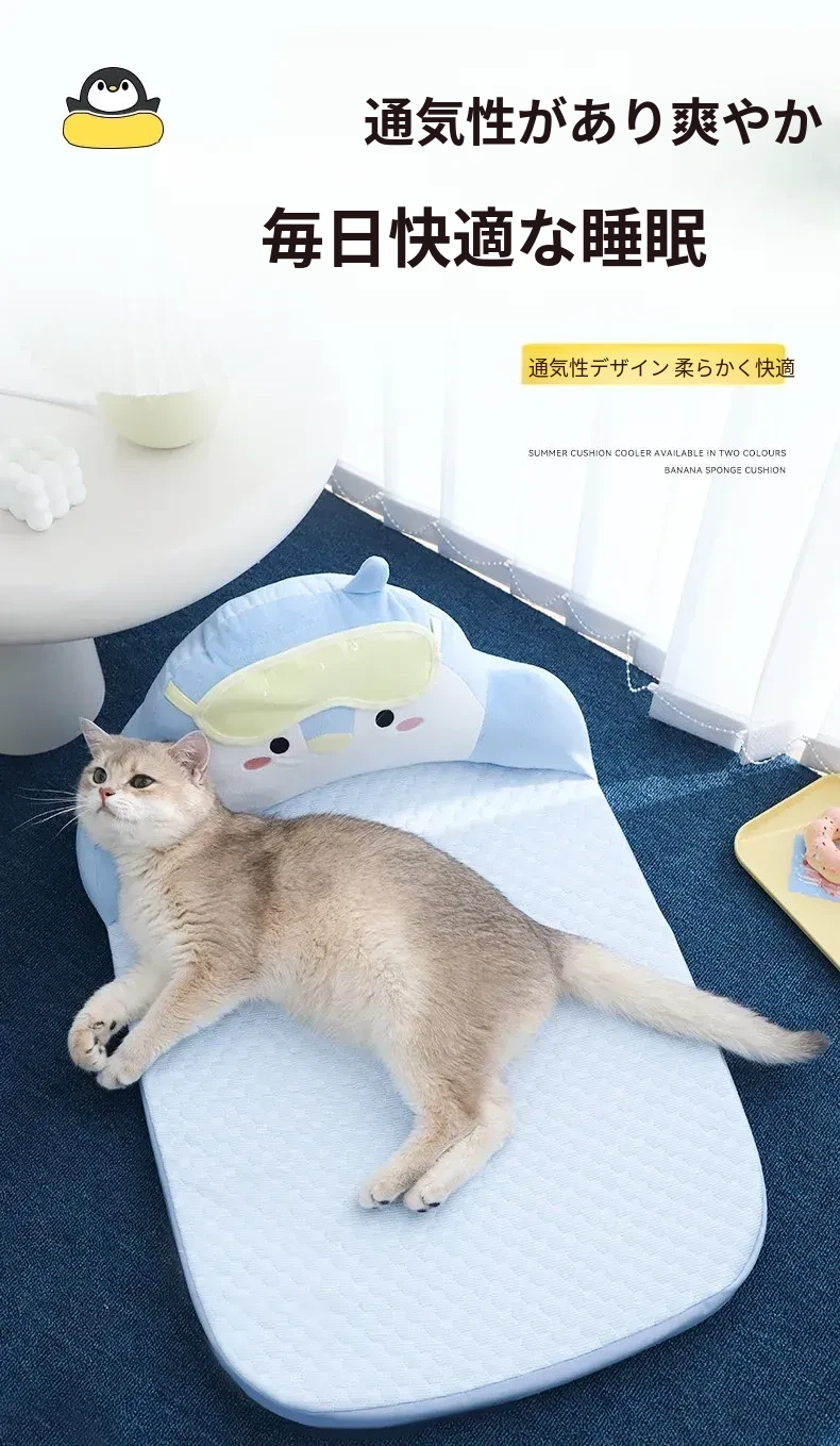 猫用四季対応クールマット - 夏の暑さを和らげる快適なペットベッド!愛猫を涼しく守る、通気性抜群のクッションマットです。